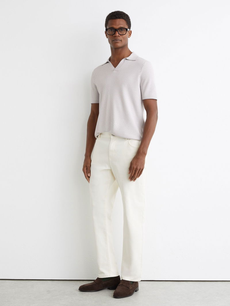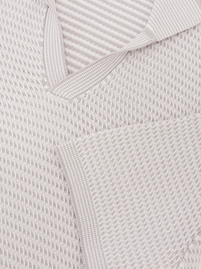 Open-Collar Textured-Knit Polo Shirt In Soft Grey