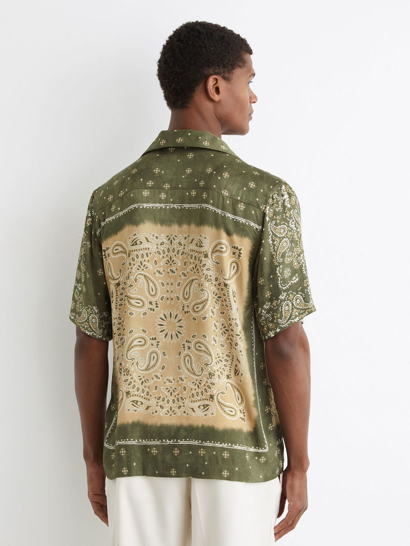 Paisley-Print Cuban-Collar Shirt In Sage Green