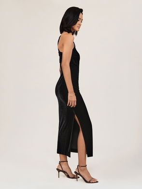 Petite Asymmetric Draped Midi Dress In Orange