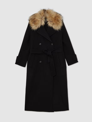 Petite Faux-Fur Collar Blindseam Coat Wool-Blend In Chocolate Brown