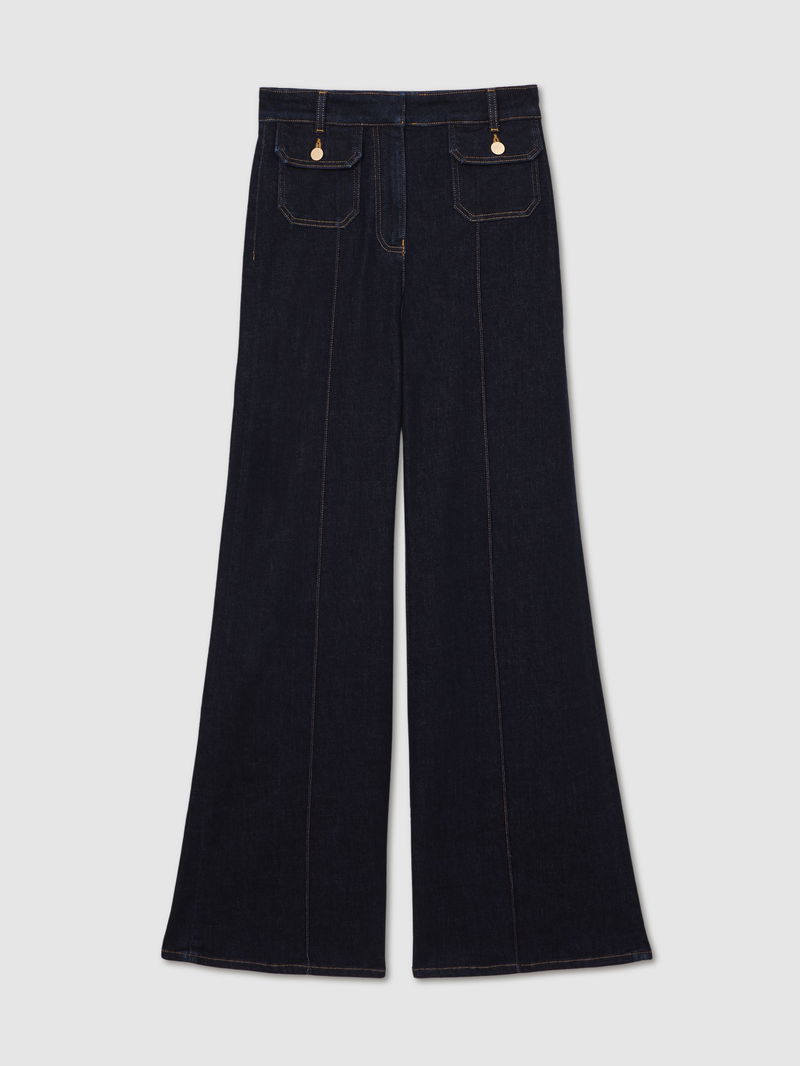 Petite Flared Pocket-Detail Jeans In Dark Blue