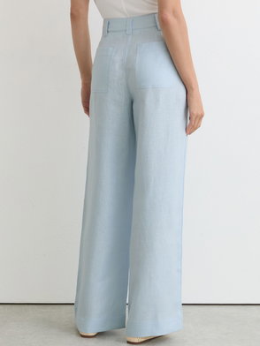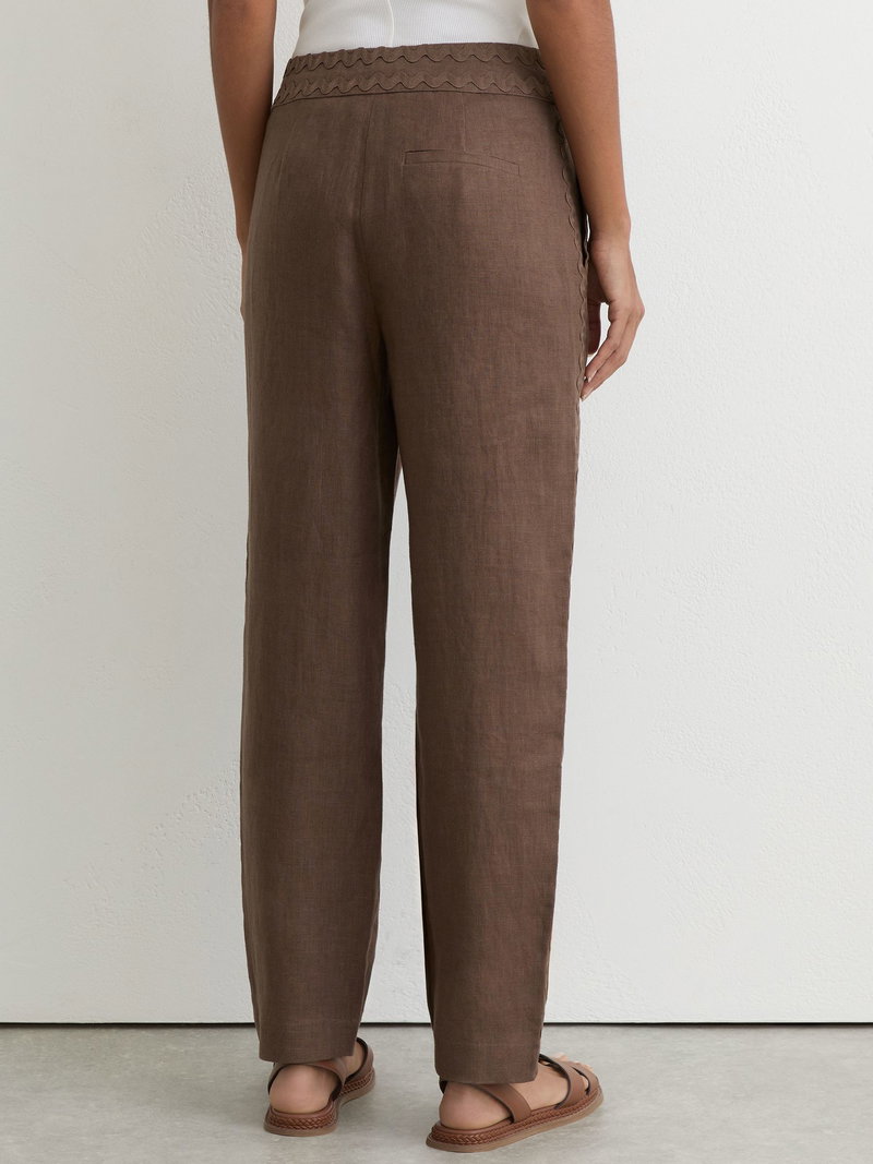 Petite Linen Wave-Trim Tapered Trousers In Brown