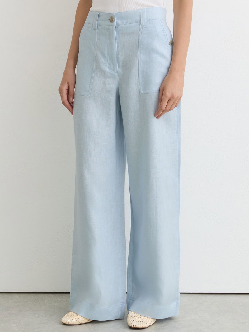 Petite Linen Wide-Leg Trousers In Dusty Blue