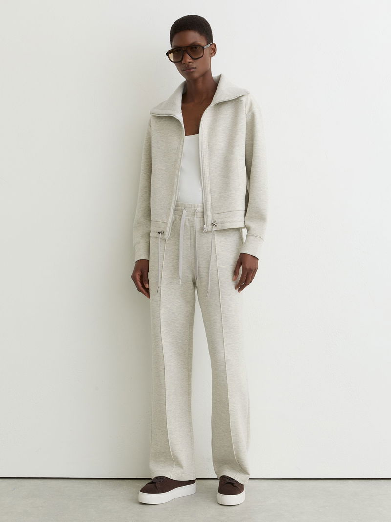 Petite Premium Interlock Wide-Leg Joggers In Grey Marl
