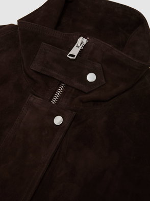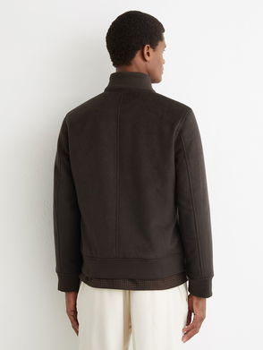 Petite Suede Funnel-Neck Bomber Jacket In Chocolate Brown