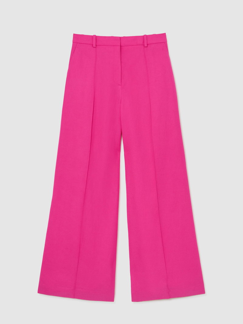 Petite Wide-Leg Pintuck Trousers With Linen In Pink