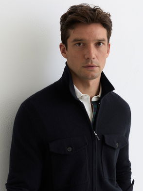 Premium Interlock Zip-Through Overshirt In Airforce Blue