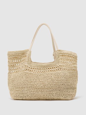 Raffia-Effect Colour-Block Tote Bag In Navy