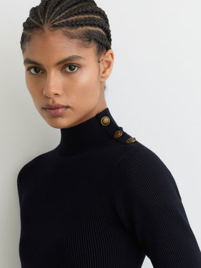 Rib-Knit High-Neck Peplum Top In Burgundy