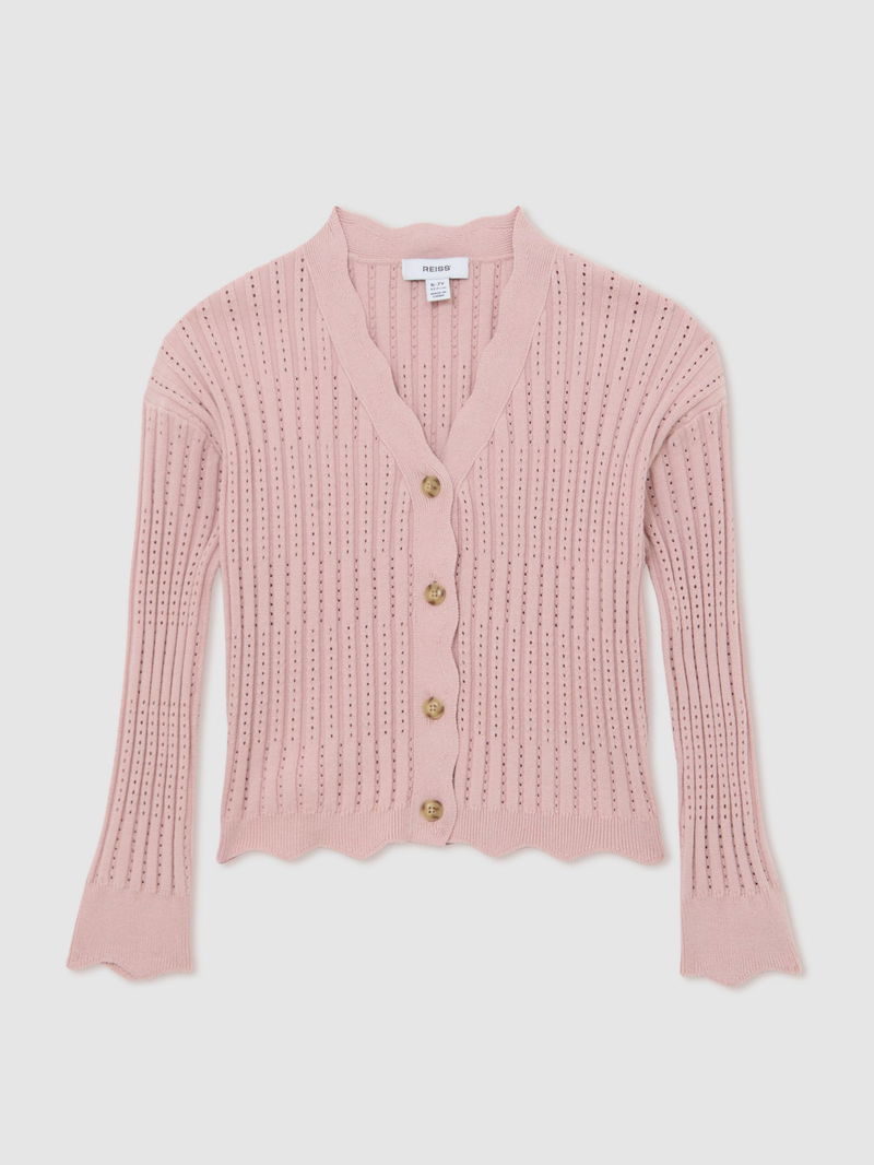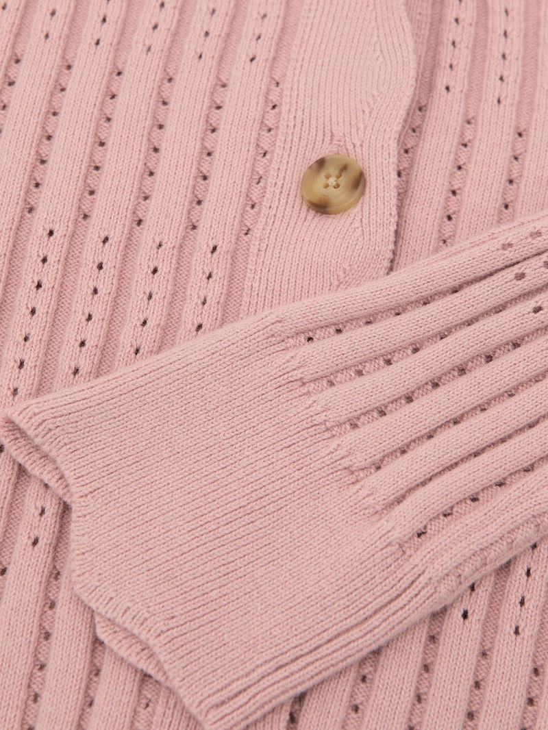 Rib-Knit Pointelle Cardigan In Pink