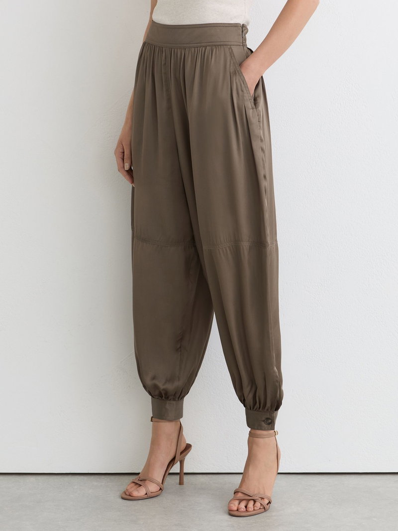 Satin Balloon-Leg Trousers In Taupe Neutral