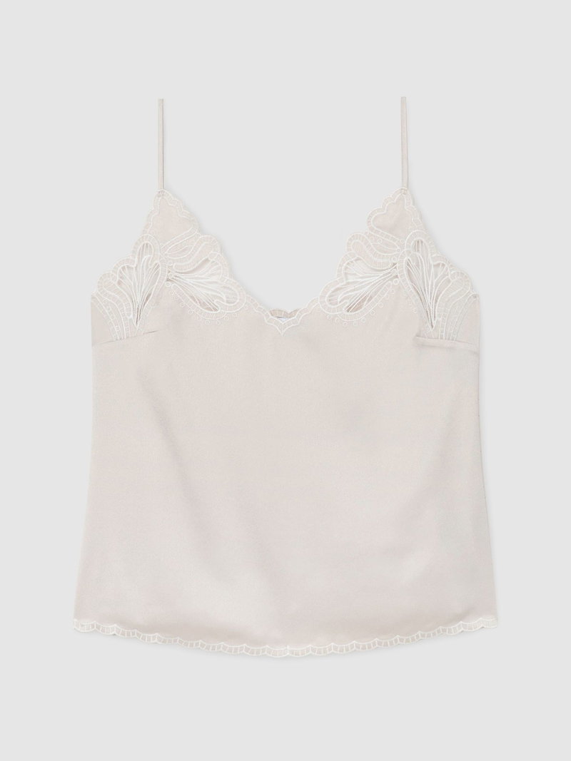 Satin Lace-Detail Cami Top In Neutral