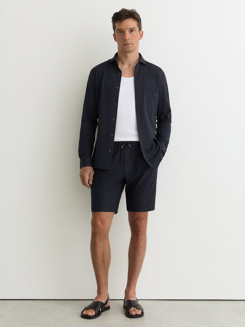 Seersucker Cutaway-Collar Shirt Regular-Fit In Navy