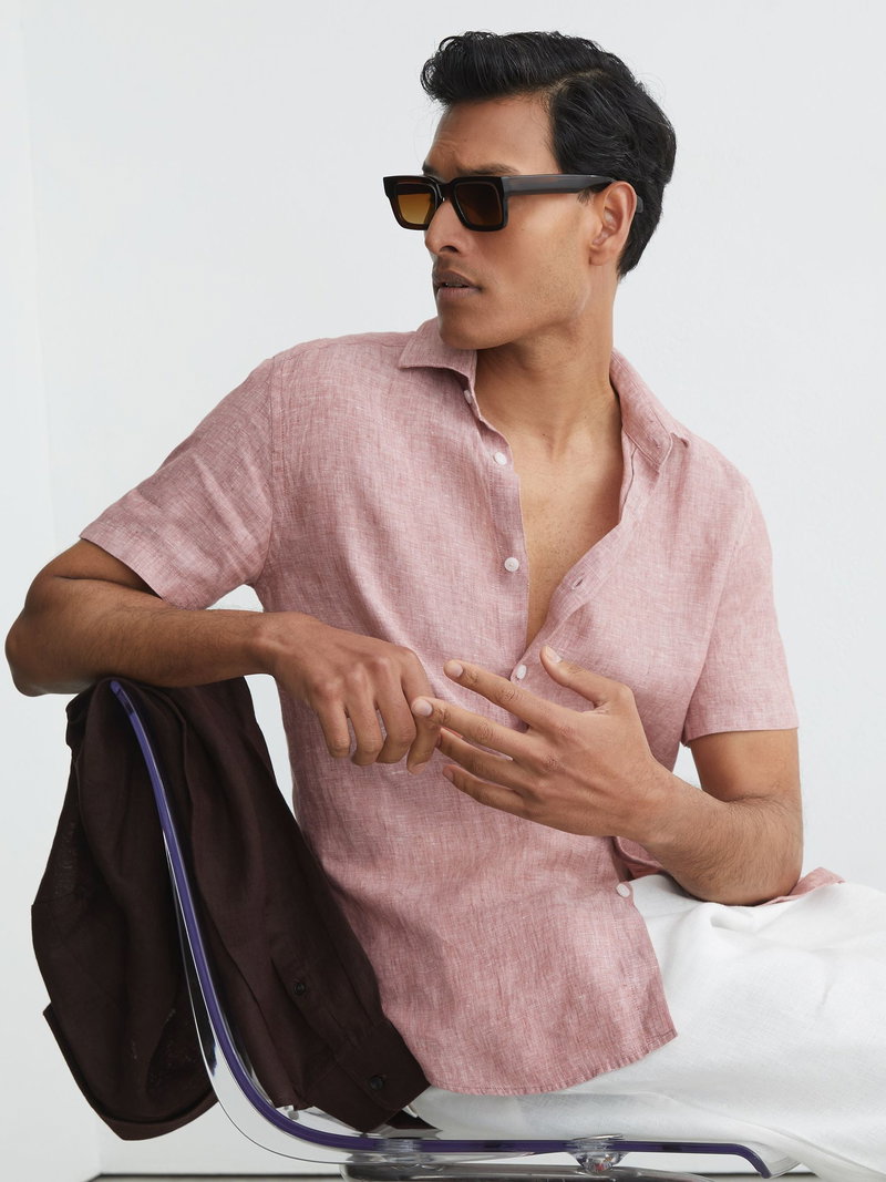 Crafted from 100% linen, the Holiday shirt offers a lightweight, breathable feel that’s ideal for warmer days. Style it open over a basic tee for a relaxed layered look, or fasten the French placket for a more polished finish.
