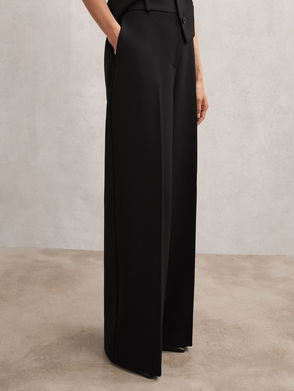 The wide-leg silhouette is accented by dynamic side stripes, while an elasticated waistband ensures effortless comfort. Front pintucks add a touch of structure, balancing ease with refinement.