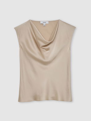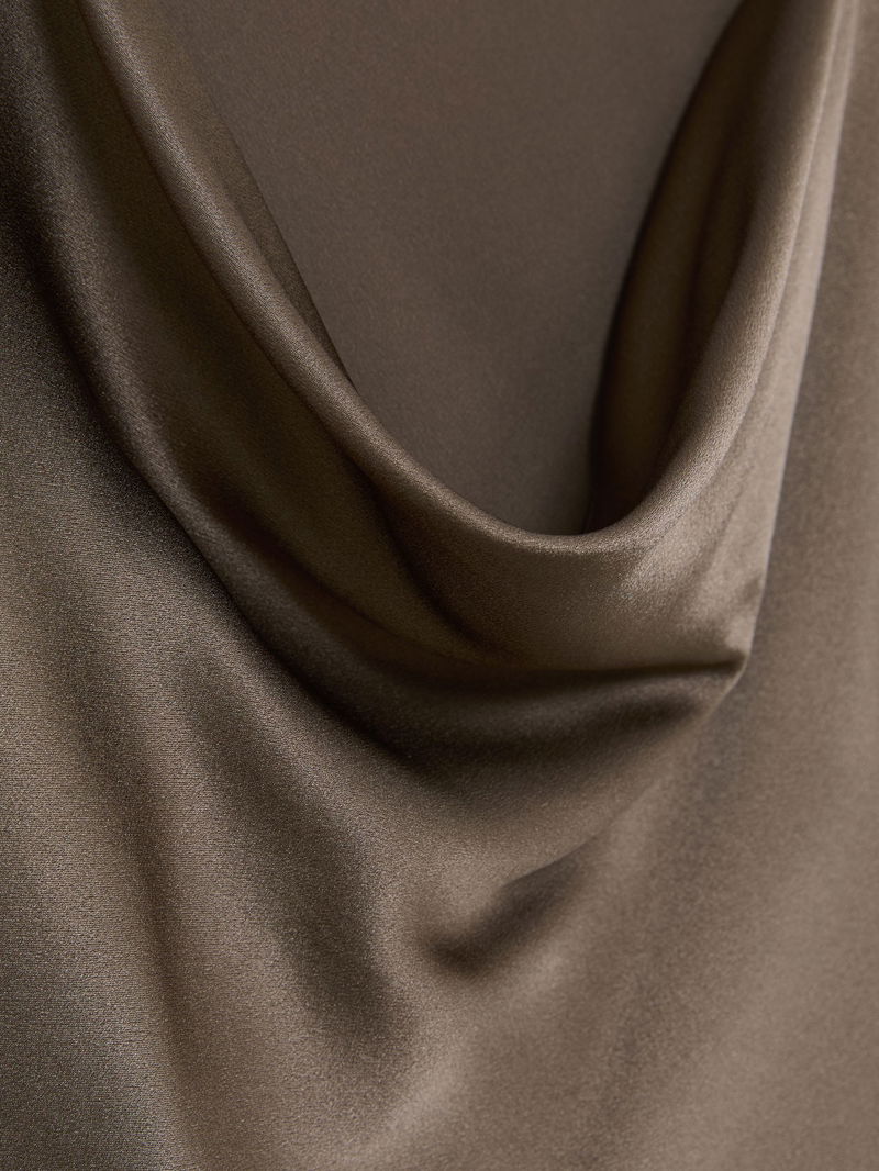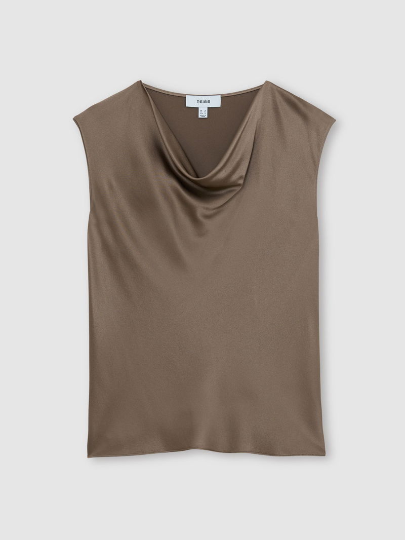 Silk Cowl-Neck Sleeveless Top In Taupe Brown