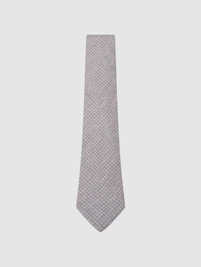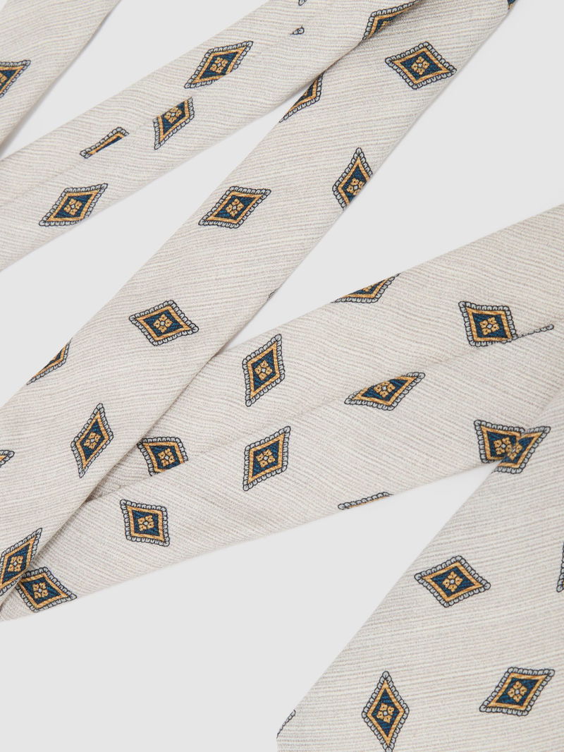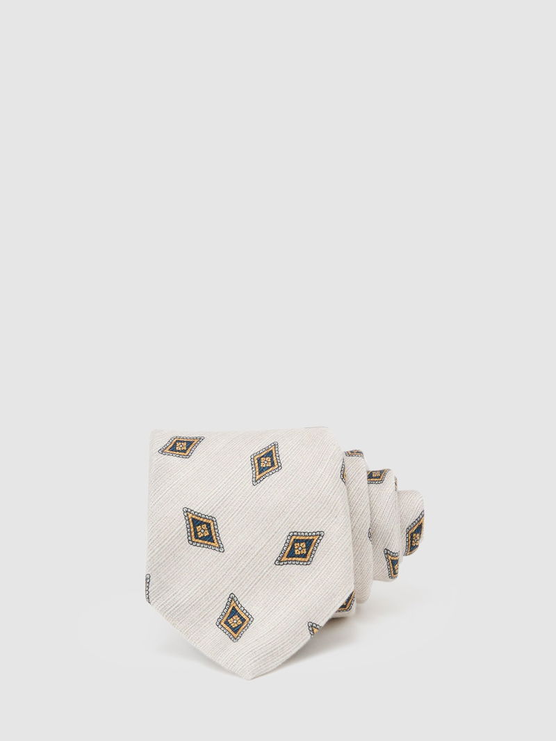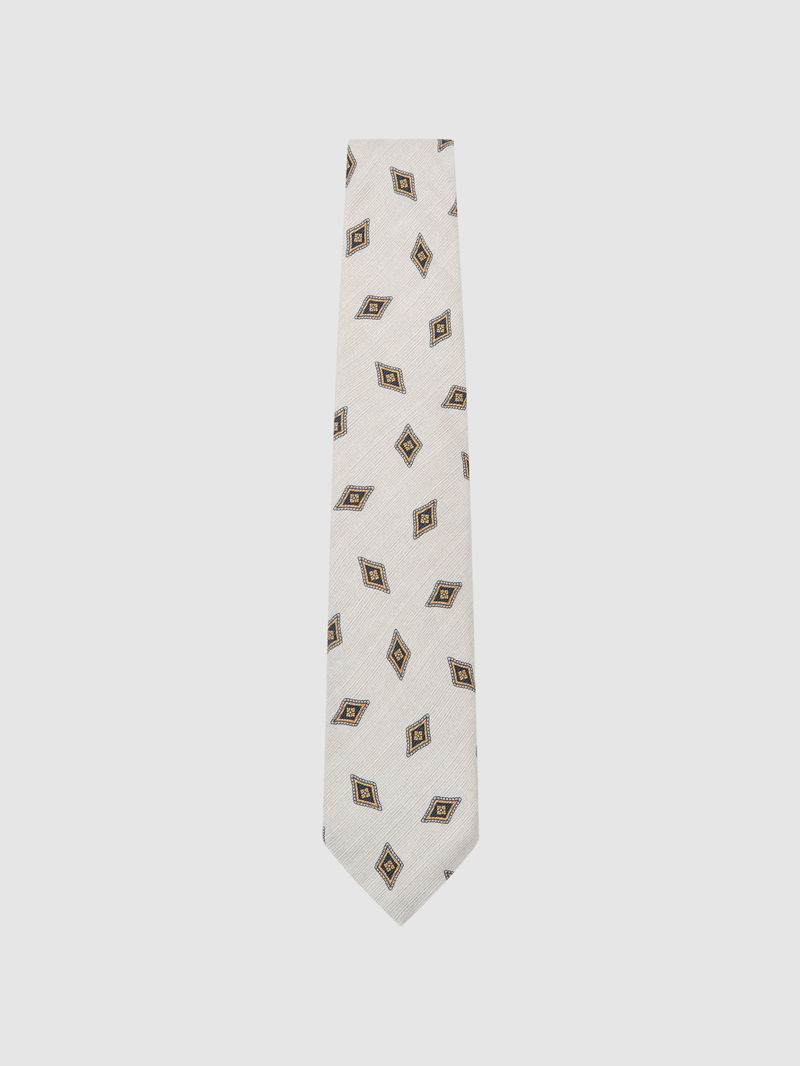 Silk Diamond Medallion-Print Tie In Light Oatmeal Brown