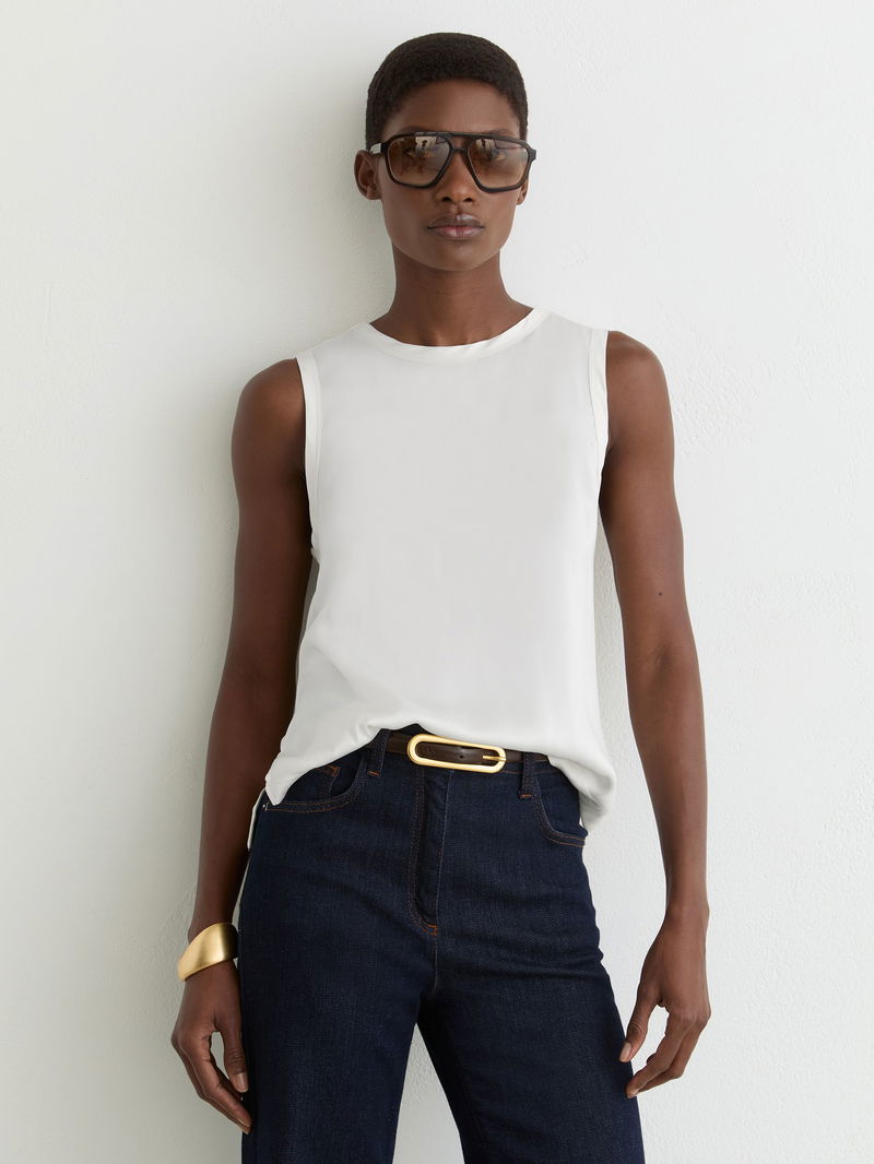 Silk-Front Jersey Vest In White