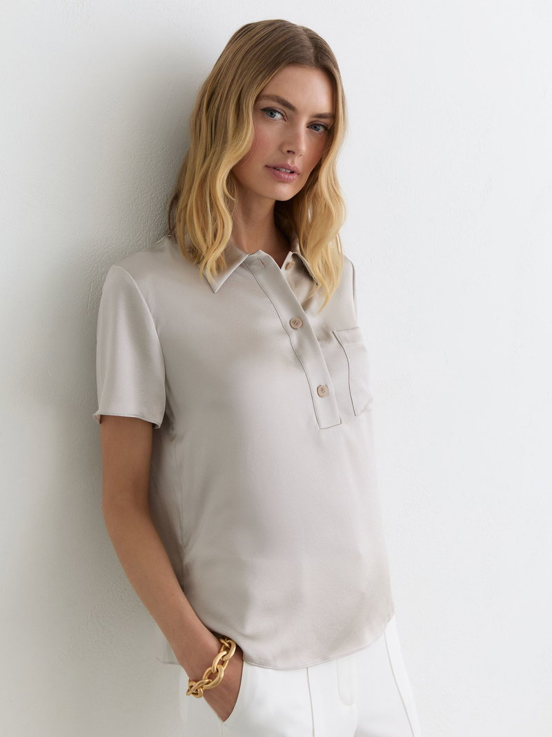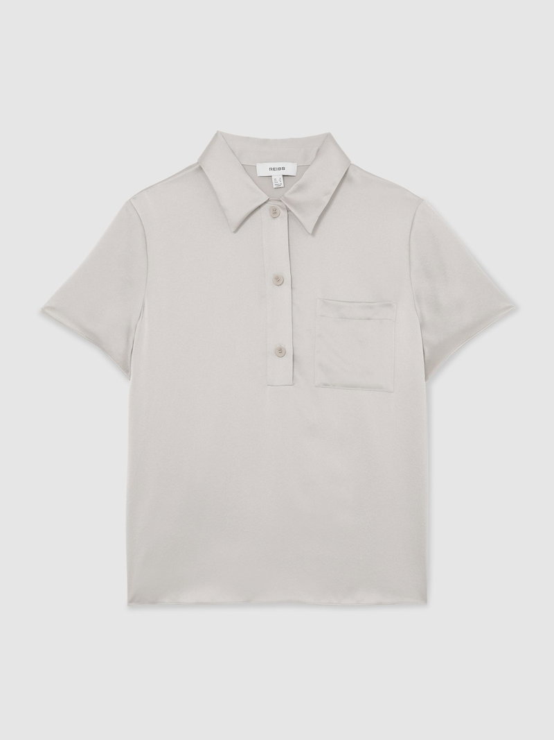 Silk Half-Button Short-Sleeve Shirt In Light Grey