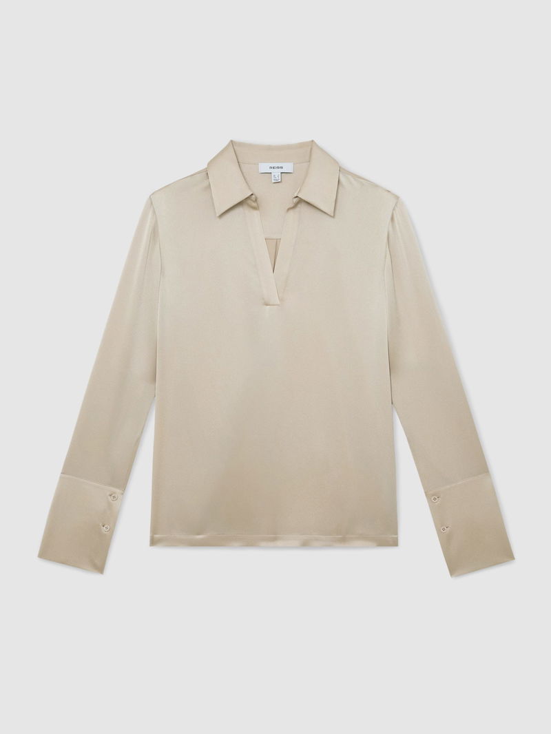 Silk Open-Collar Blouse.