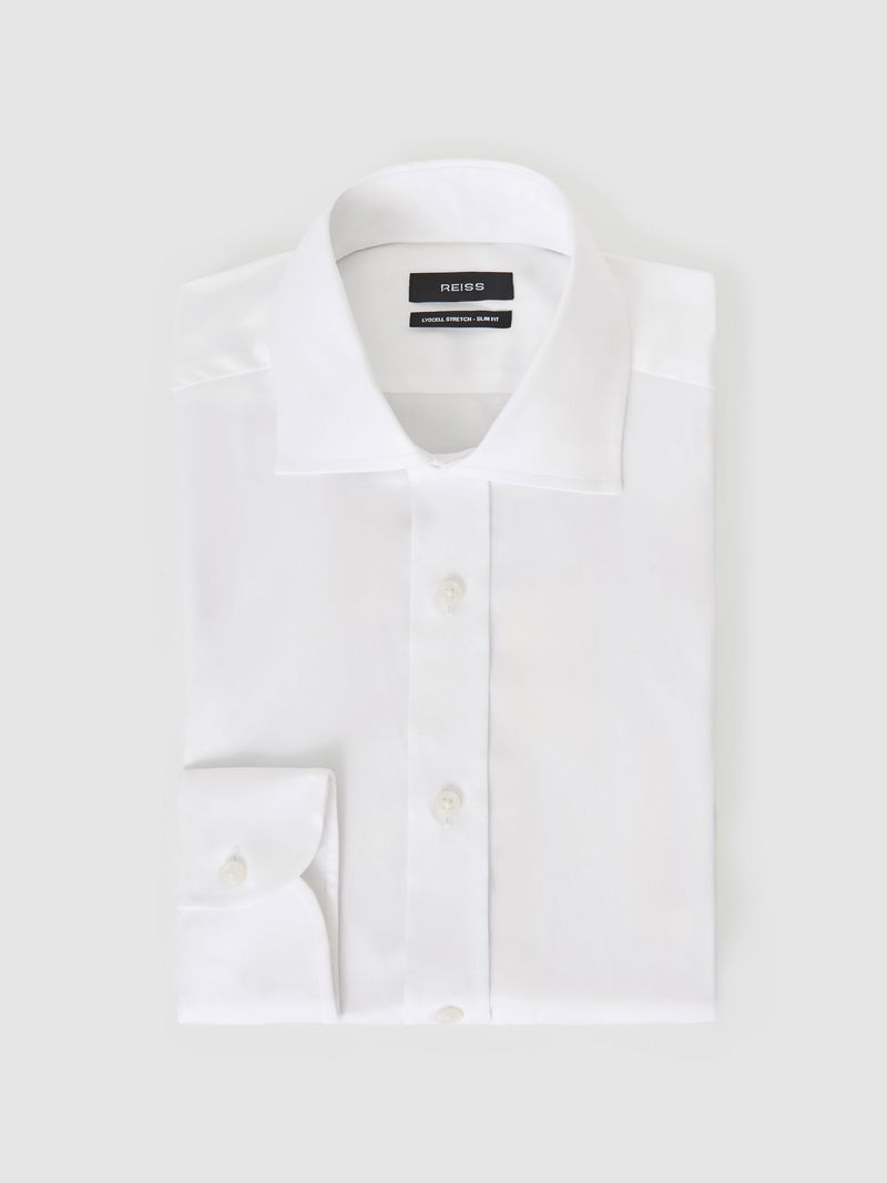Slim Fit Cotton-Blend Stretch Shirt In White