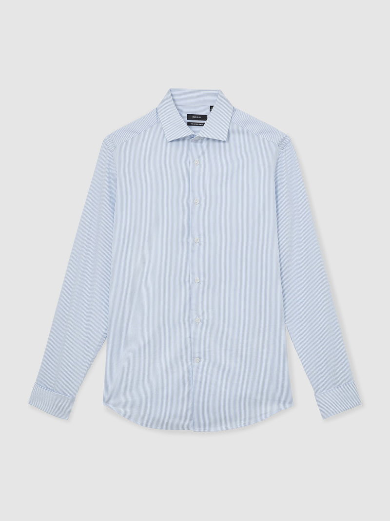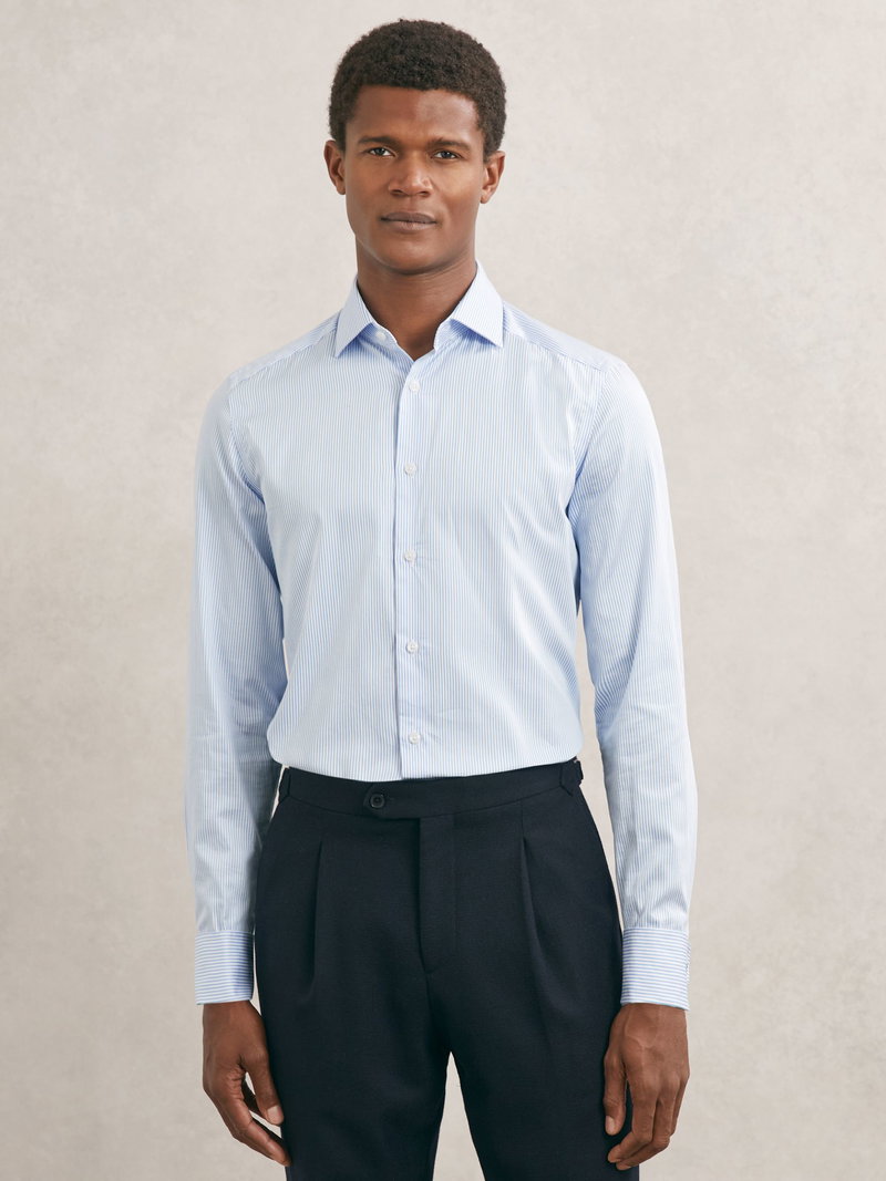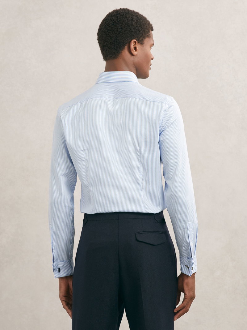 Slim Fit Regular-Fit Cotton-Satin Stripe Shirt In Blue Stripe