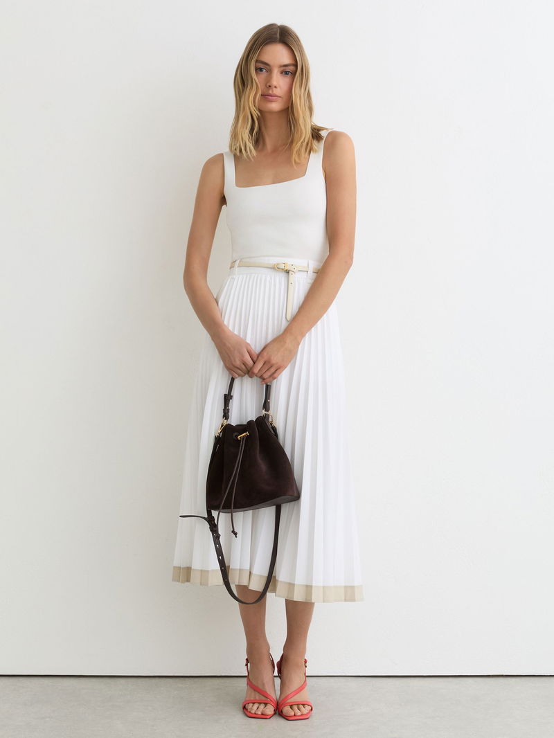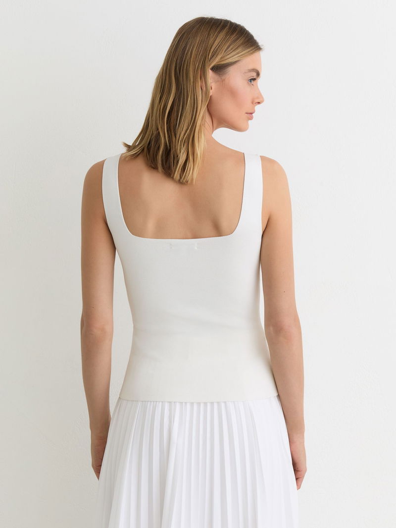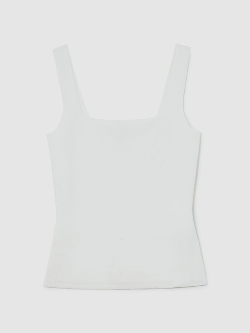 Square-Neck Compact-Knit Vest In White