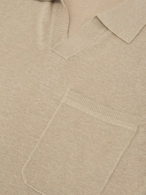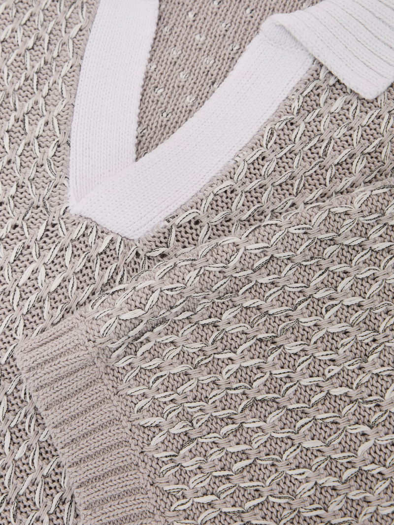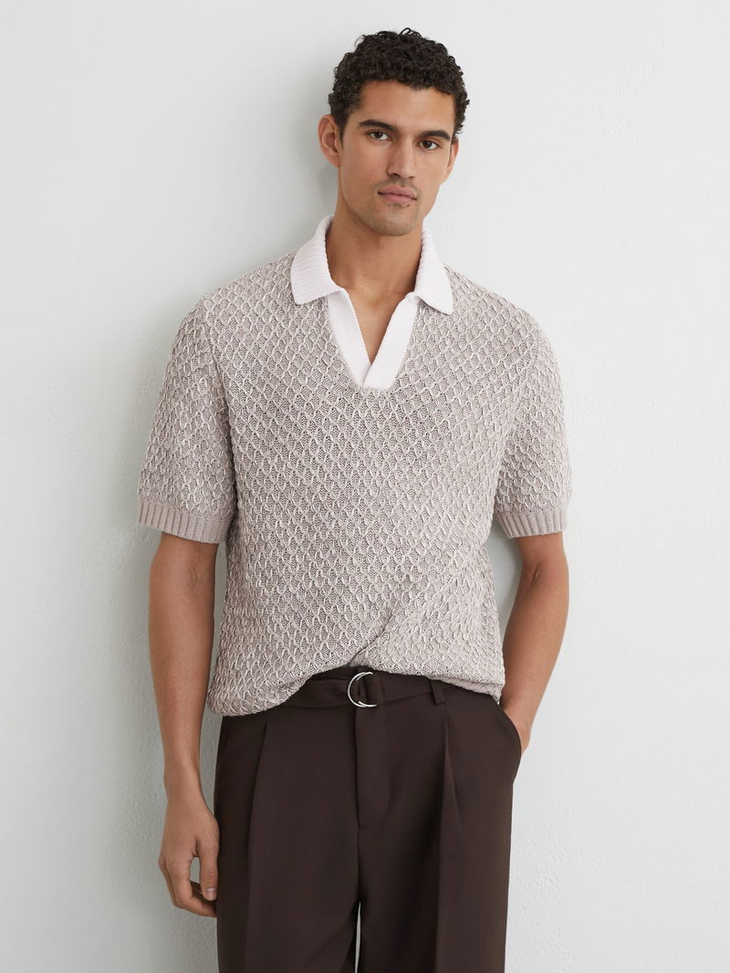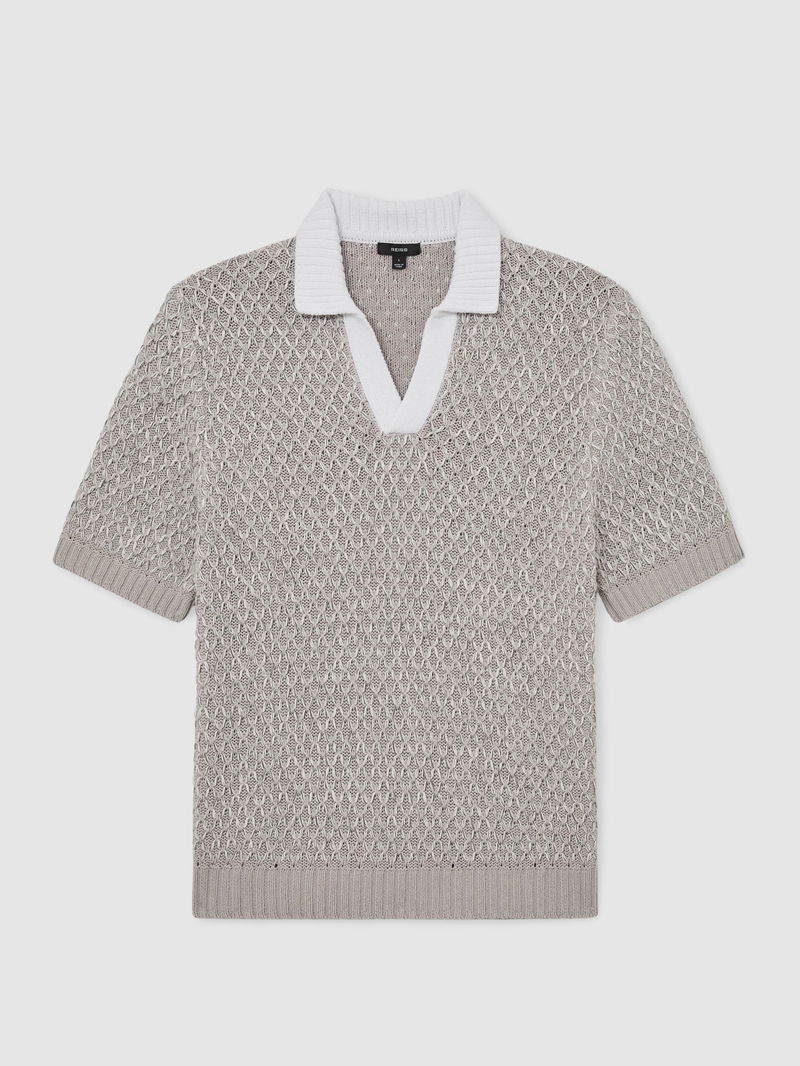 Stitch-Detail Open-Collar Knit Polo Shirt In Soft Grey