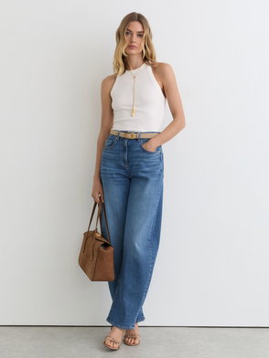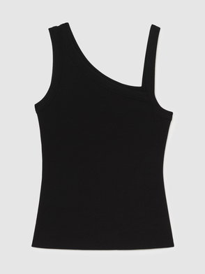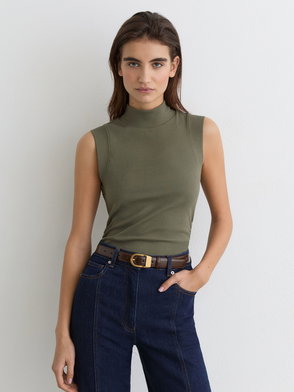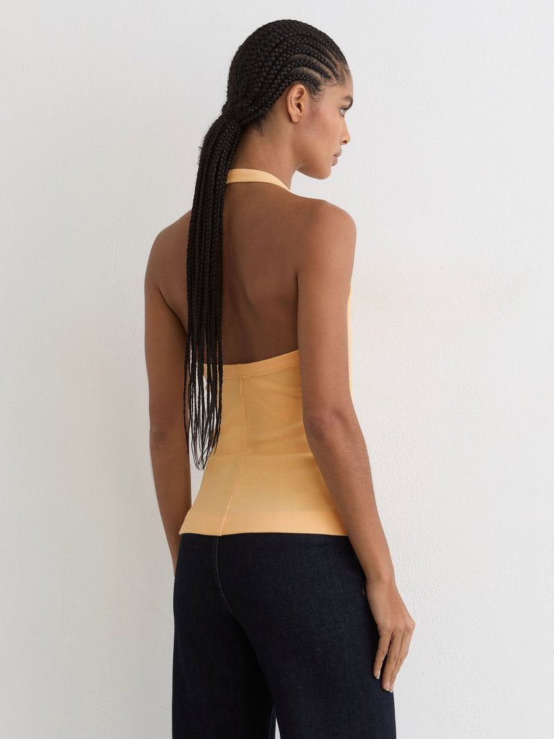 Stretch-Cotton Ribbed Halterneck Vest In Yellow