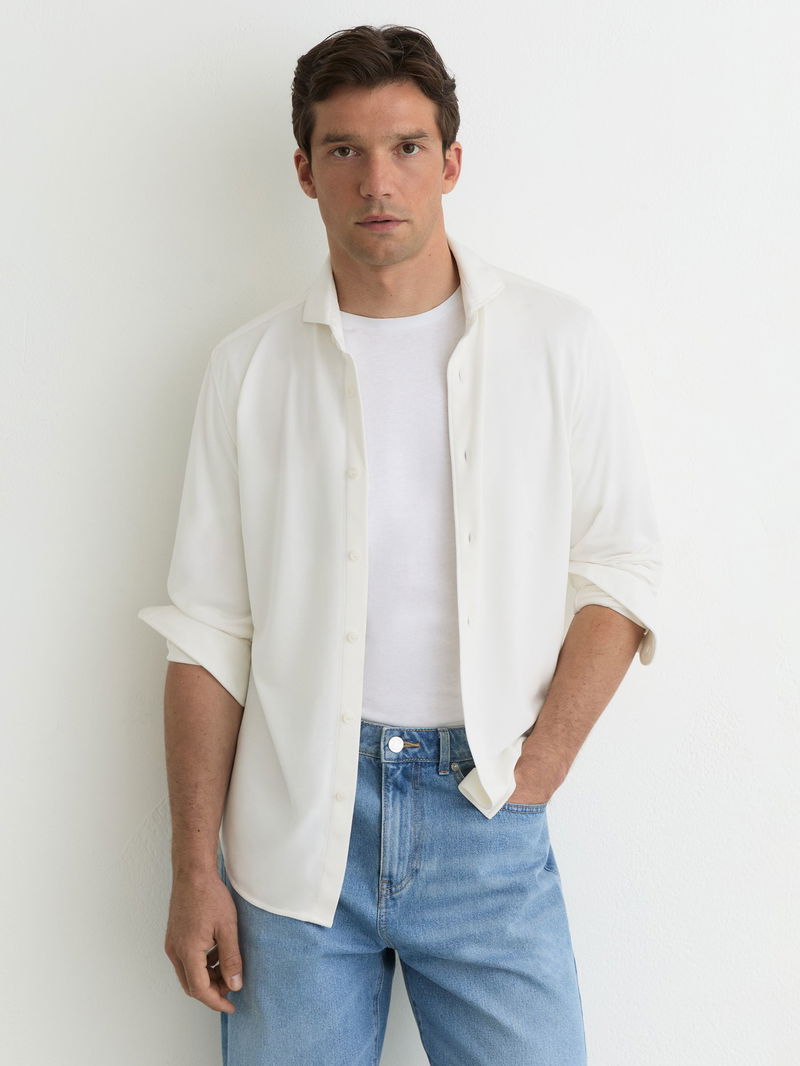 Stretch-Modal Cutaway-Collar Shirt Regular-Fit In White
