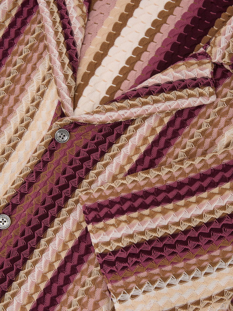 Stripe-Knit Cuban-Collar Shirt In Pink
