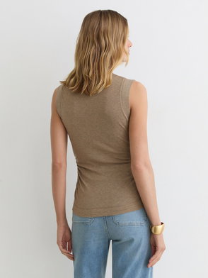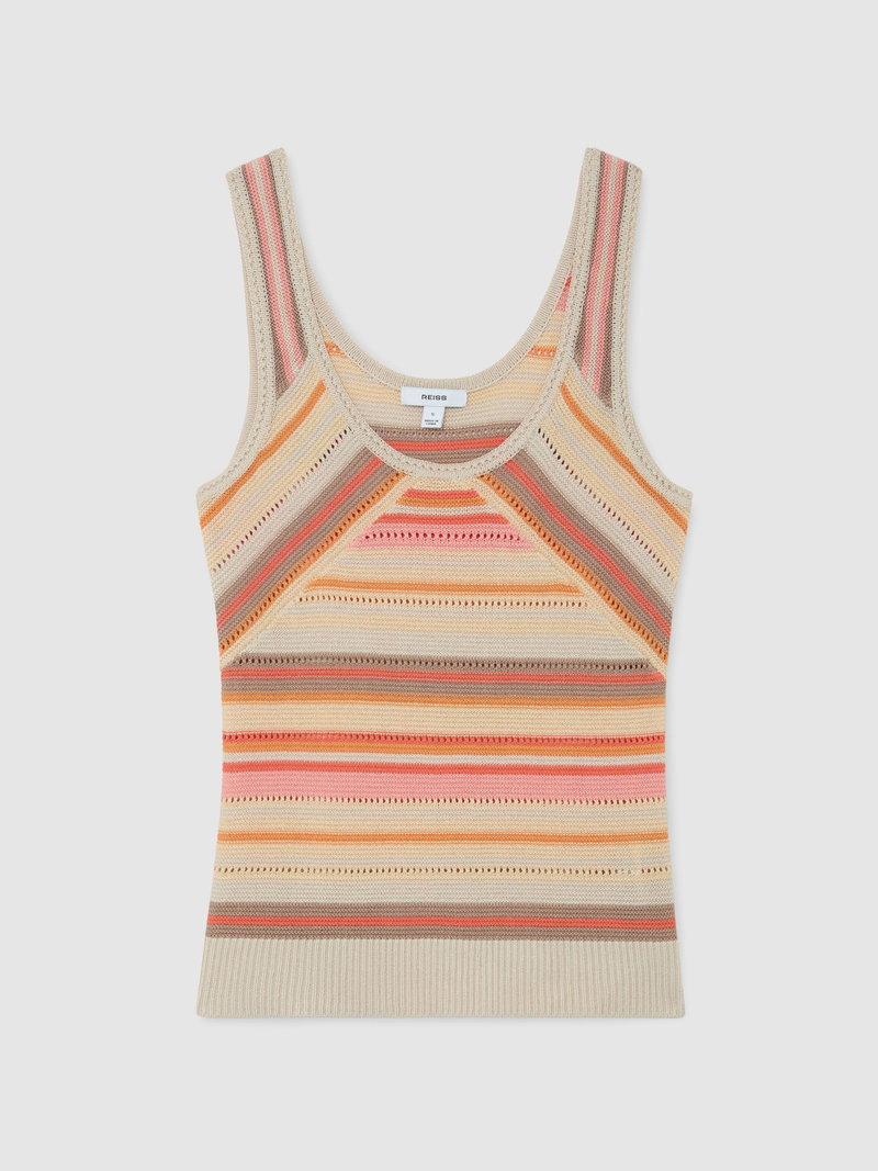 Striped Knit Scoop-Neck Vest In Neutral/Coral