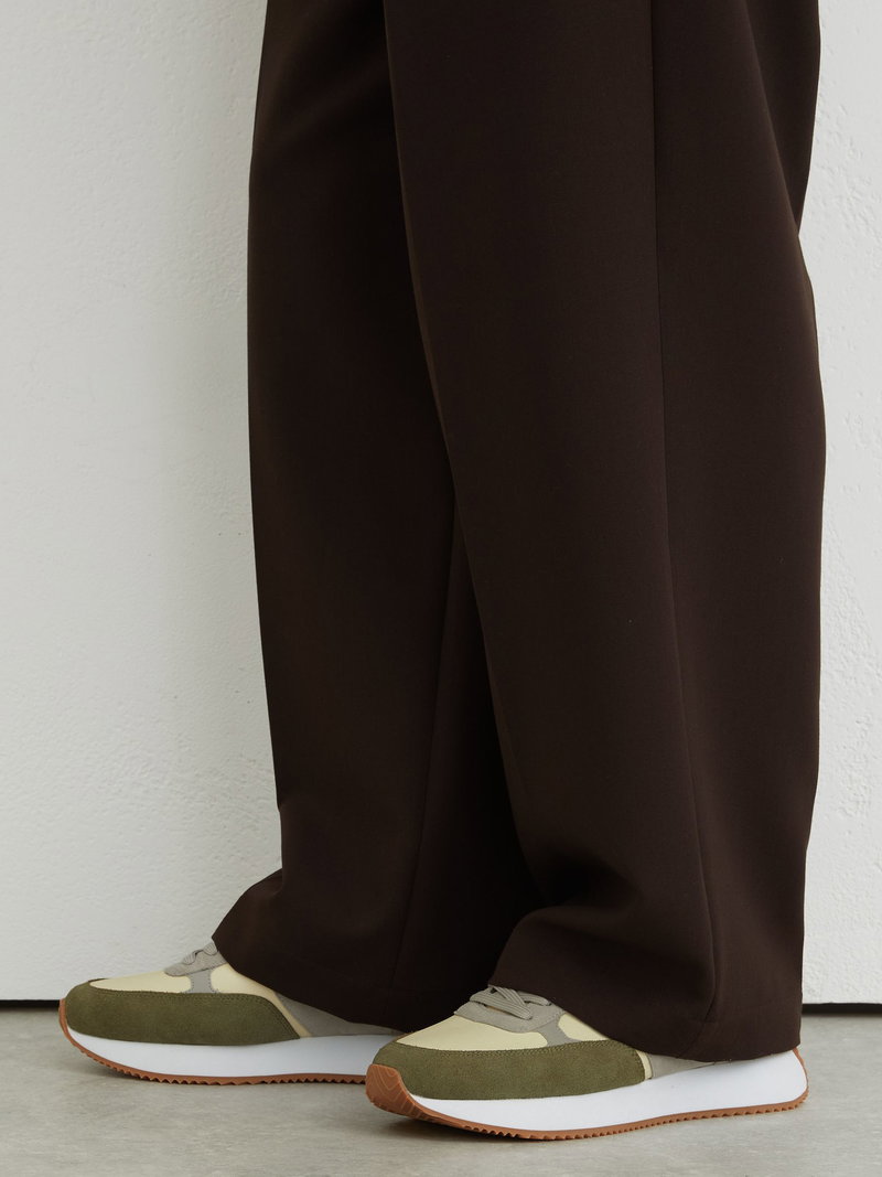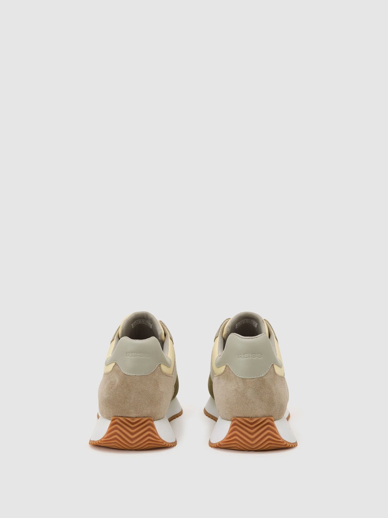 Suede Lace-Up Running Trainers In Ecru / Soft Sage