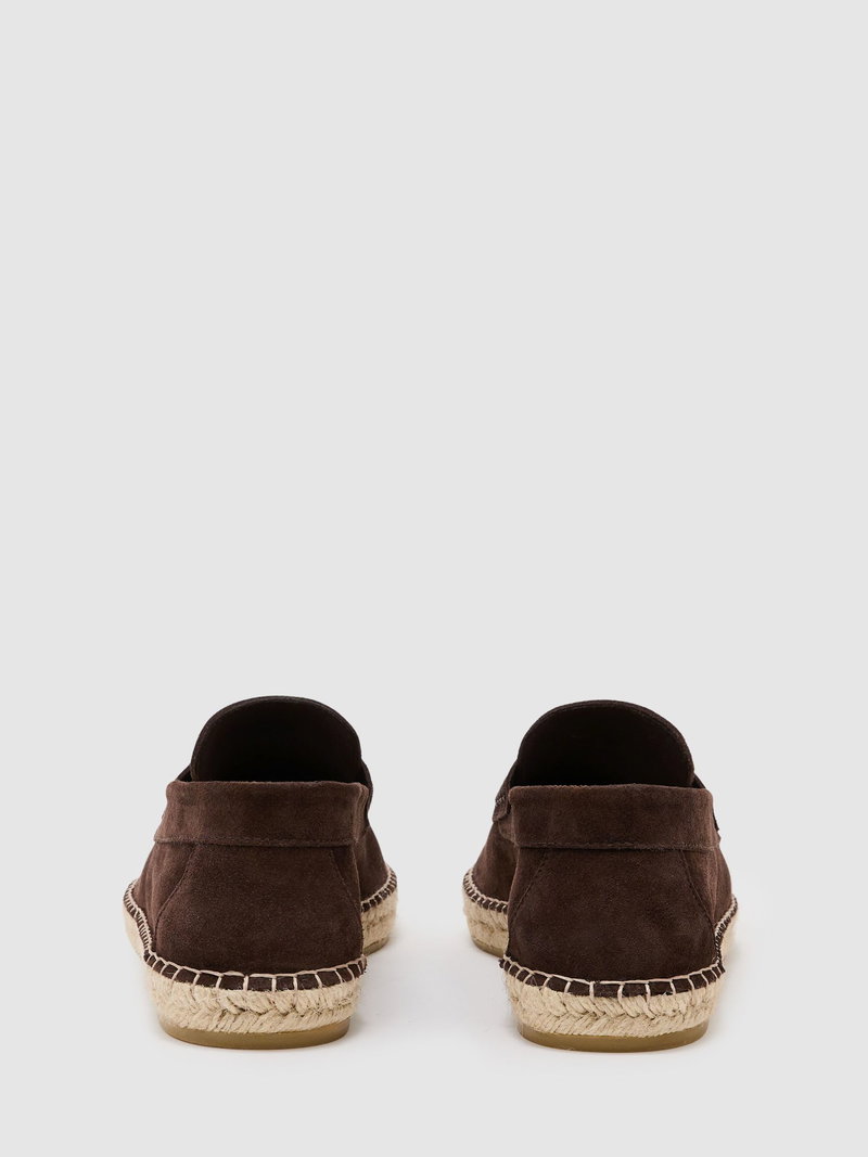 Suede Penny Loafer Espadrilles In Chocolate Brown