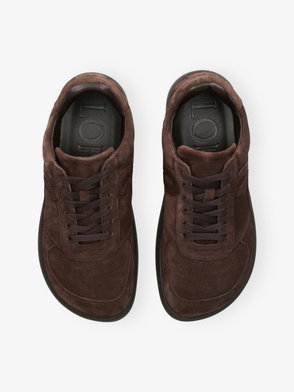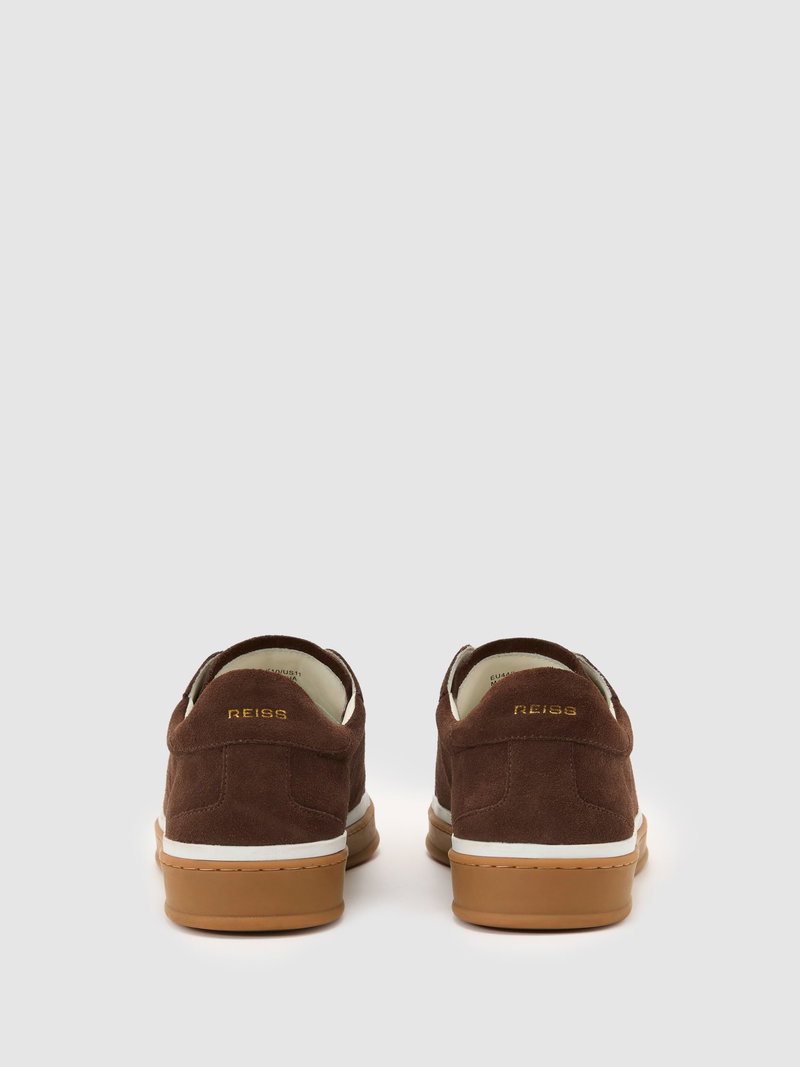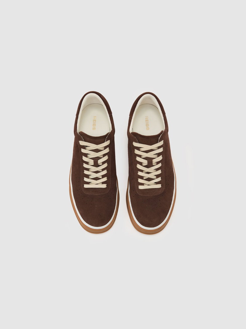 Suede Perforated-Detail Trainers In Chocolate Brown