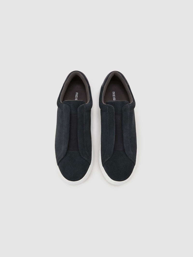 Suede Slip-On Elasticated Trainers In Charcoal Blue