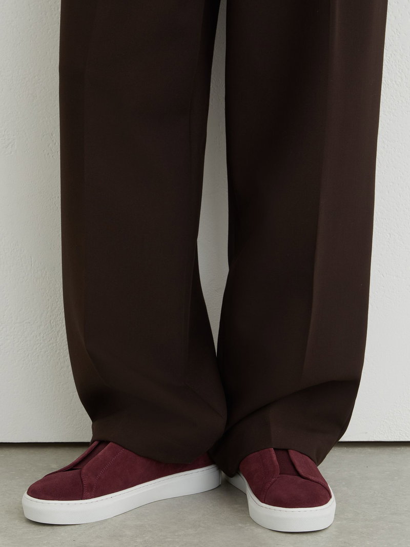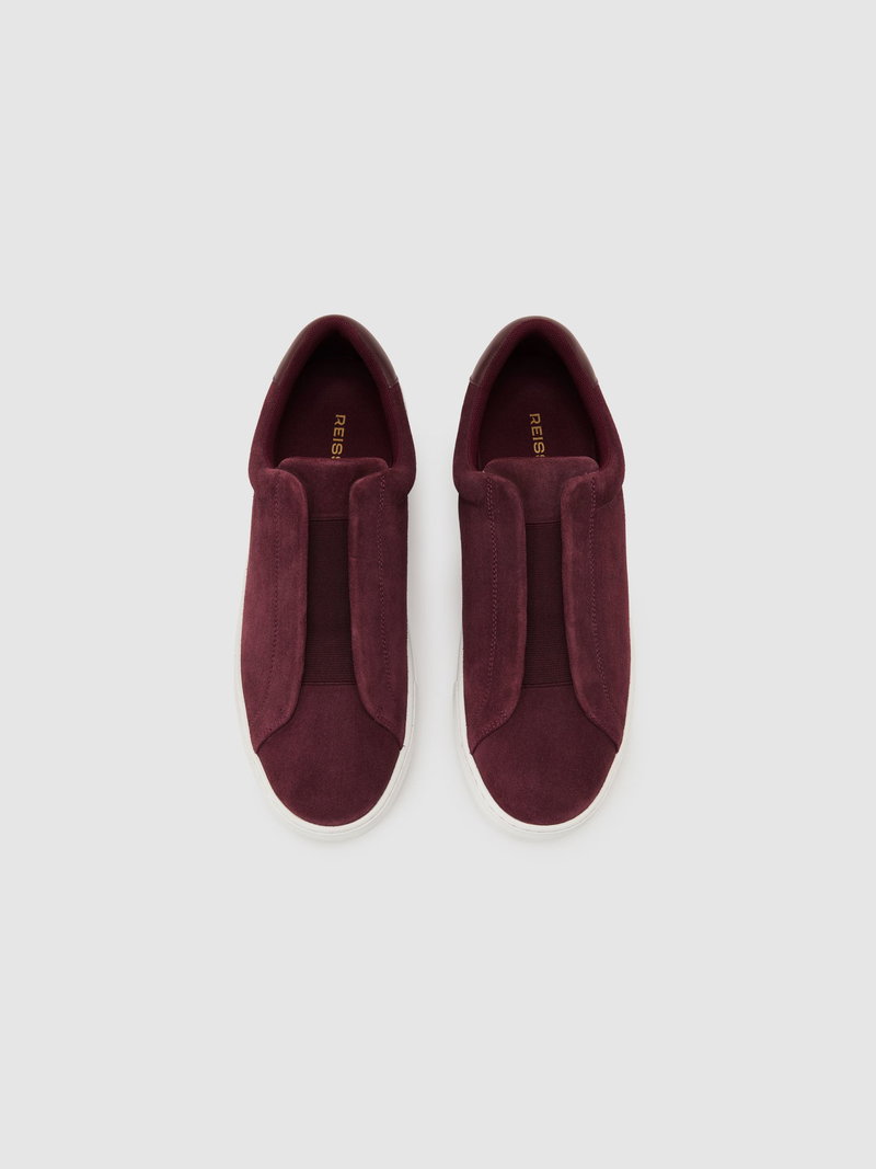 The Wine Red Emil trainers are crafted from supple suede with elasticated panels for easy slip-on styling. A branded leather heel counter and contrasting rubber sole complete the look with a modern, minimalist finish.