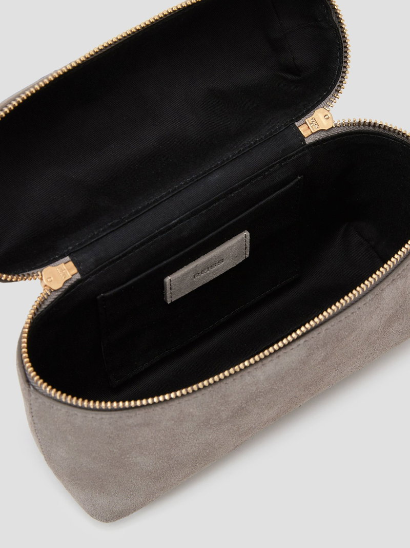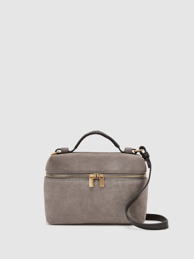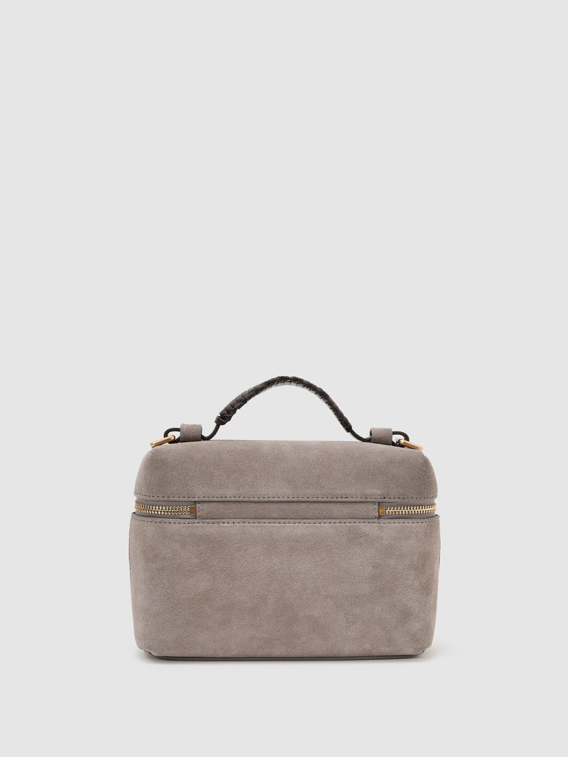 Suede Vanity Crossbody Bag In Grey