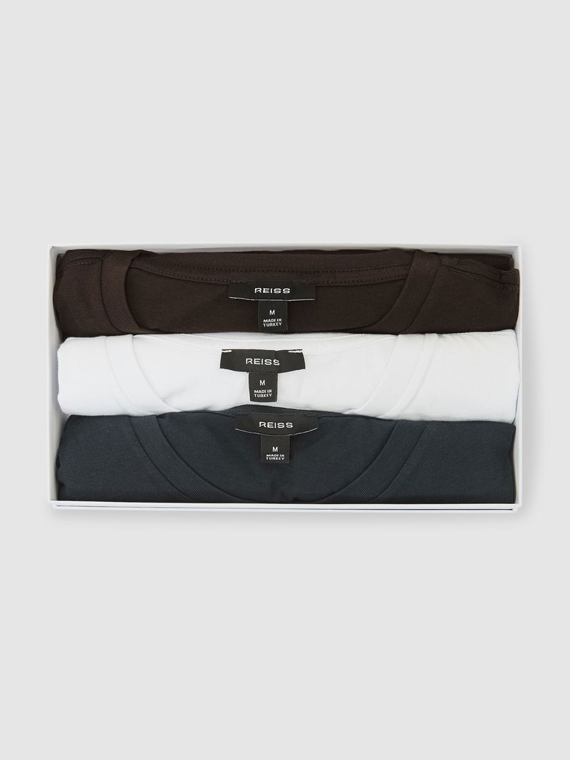 T-Shirt 3 Pack In White/Navy/Coco Brown