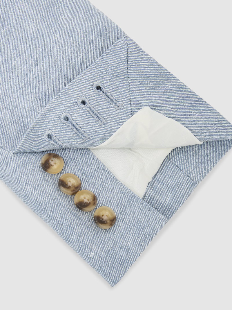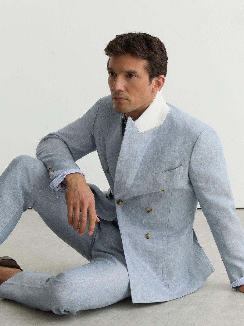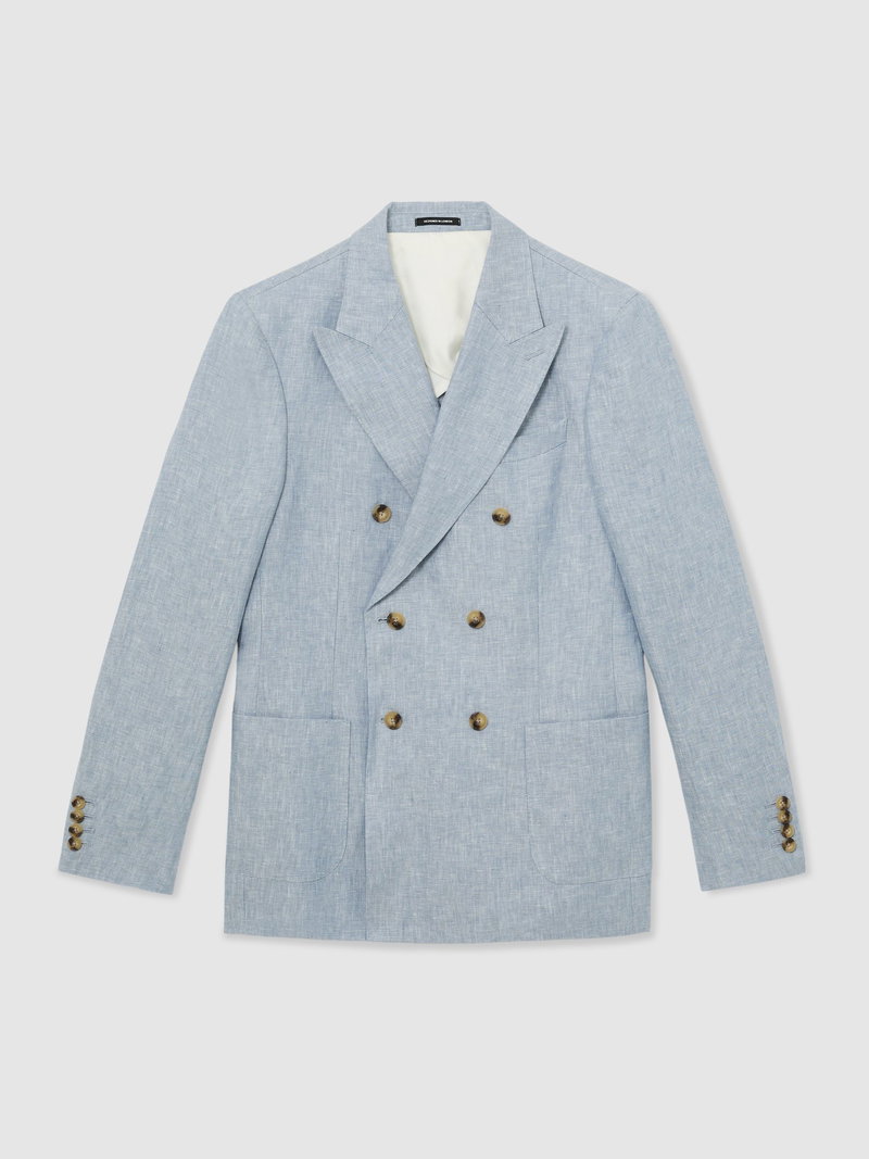Tailored Fit Linen-Twill Double-Breasted Blazer In Soft Blue
