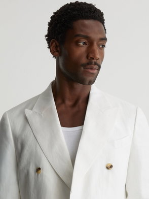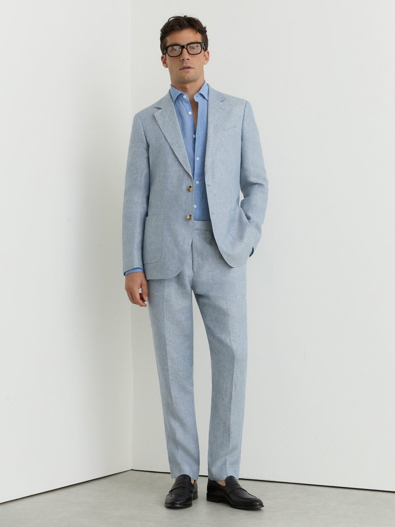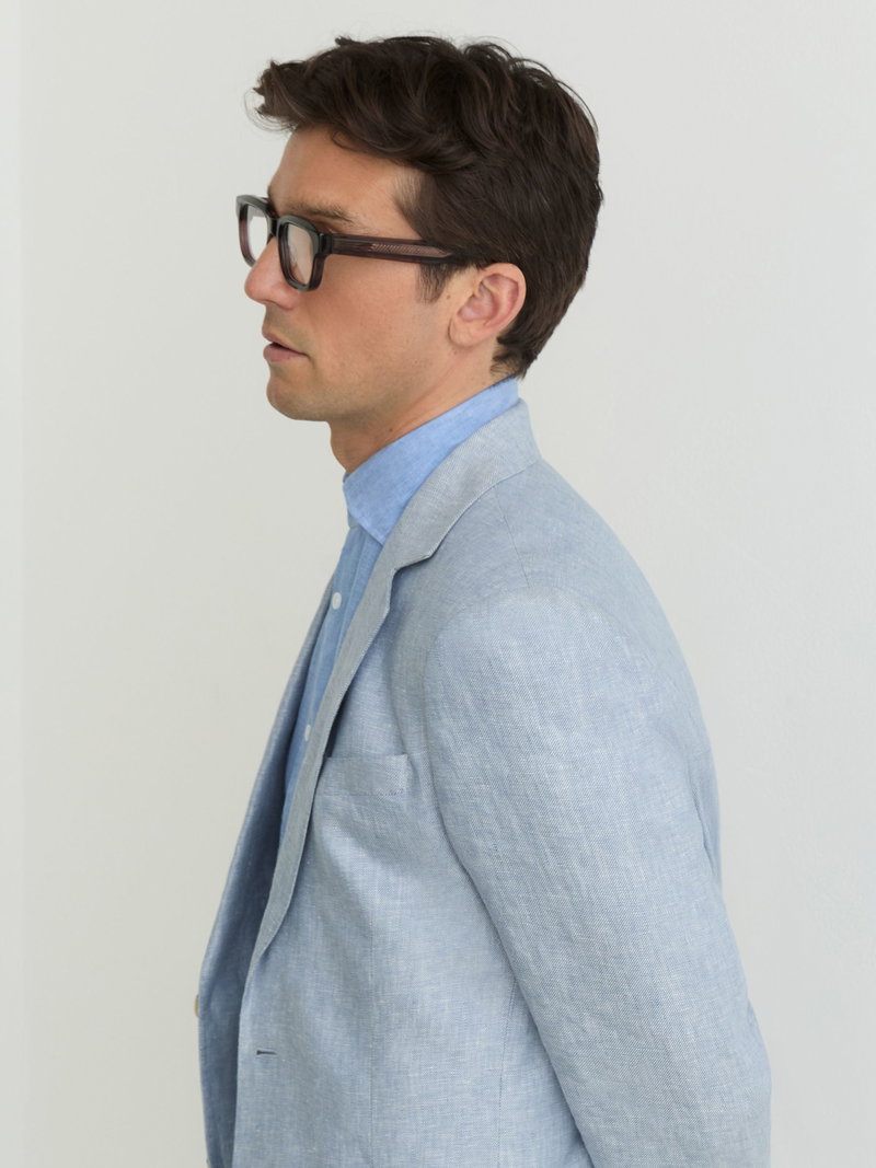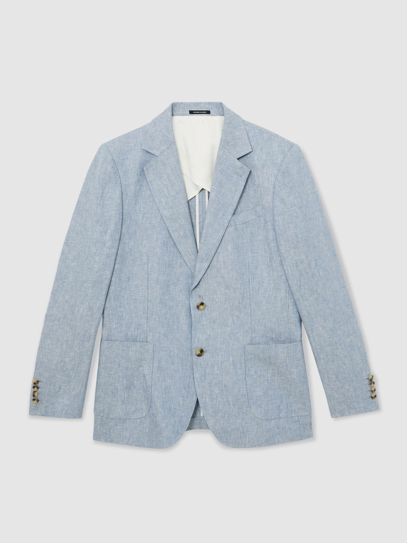 Tailored Fit Linen-Twill Single-Breasted Blazer In Soft Blue