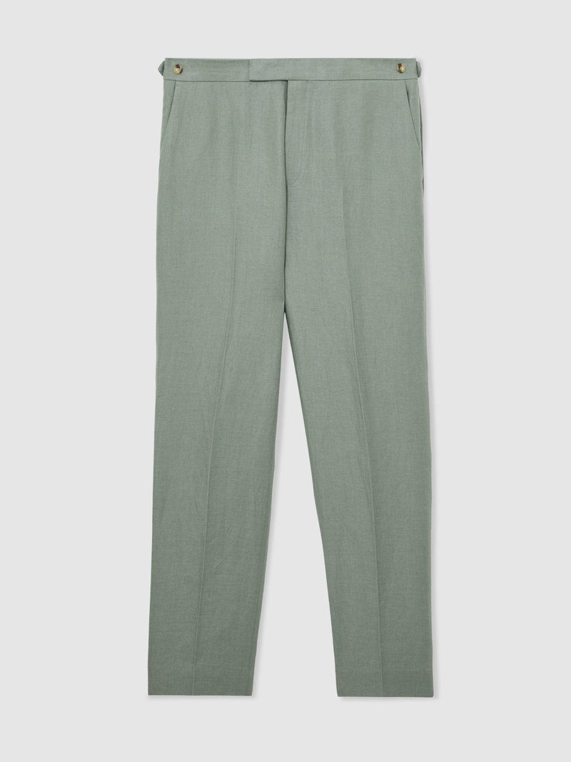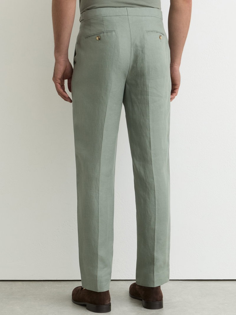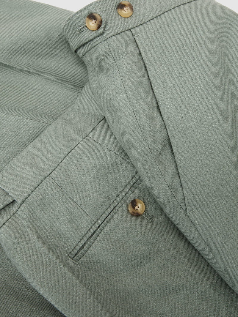Tailored Fit Linen-Twill Suit Trousers In Sage