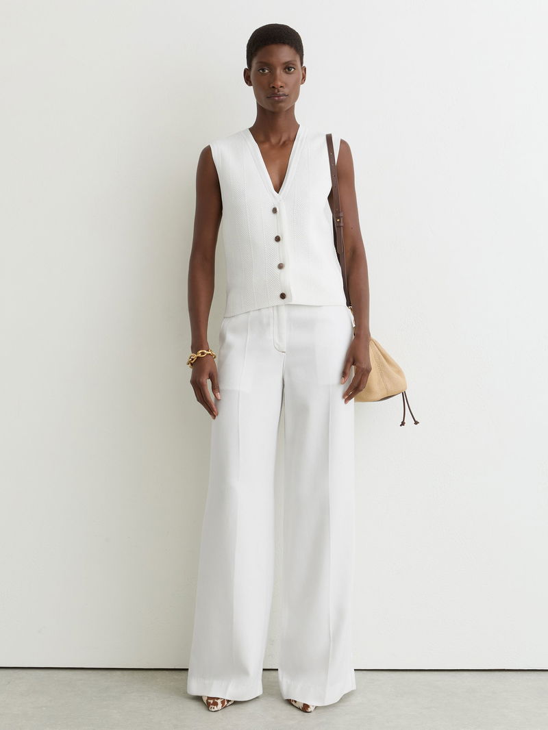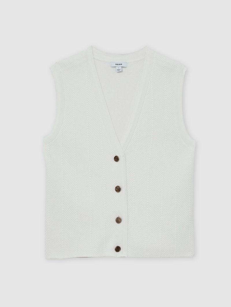 Textured-Knit Button-Through Waistcoat In White