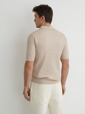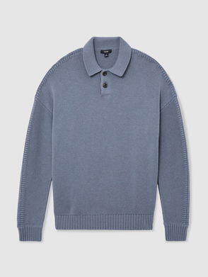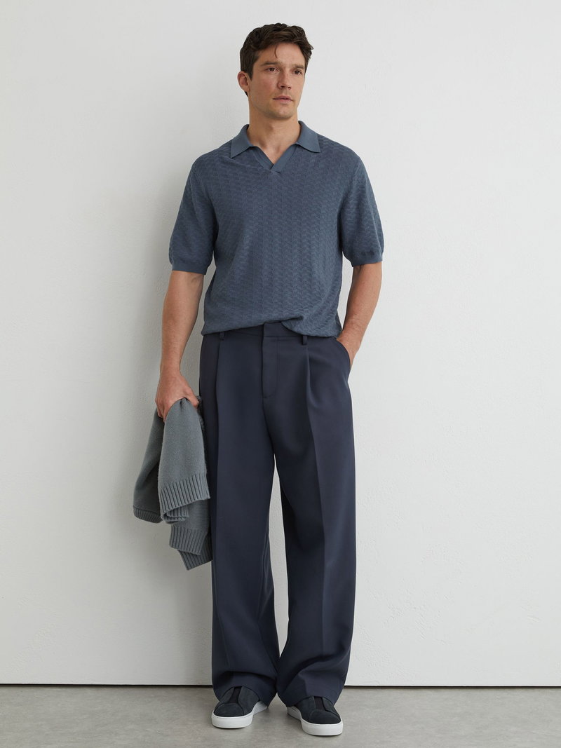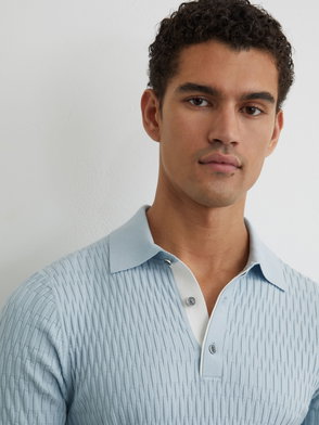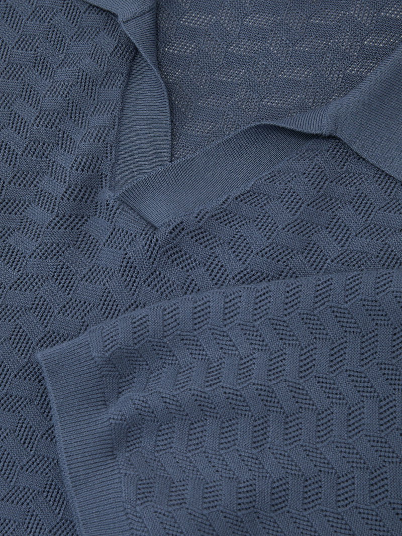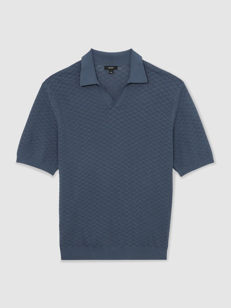 Textured-Knit Open-Collar Polo Shirt In Airforce Blue