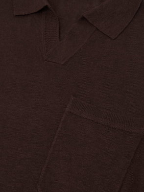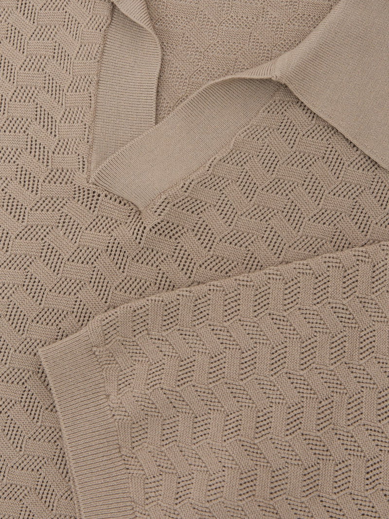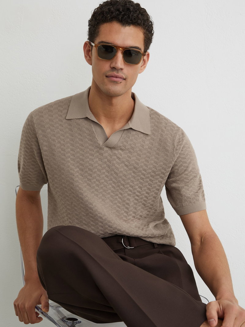 Textured-Knit Open-Collar Polo Shirt In Taupe Brown