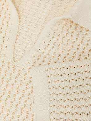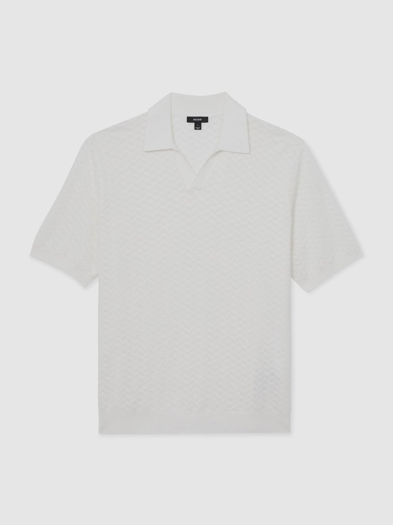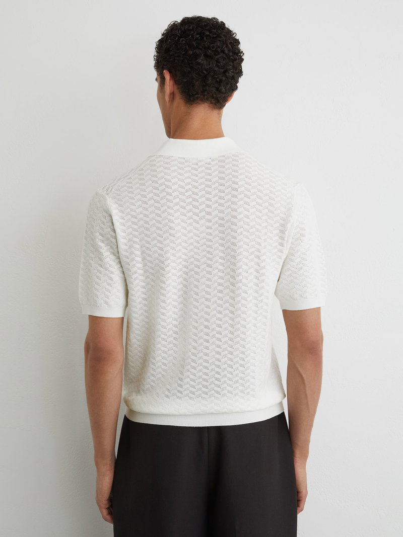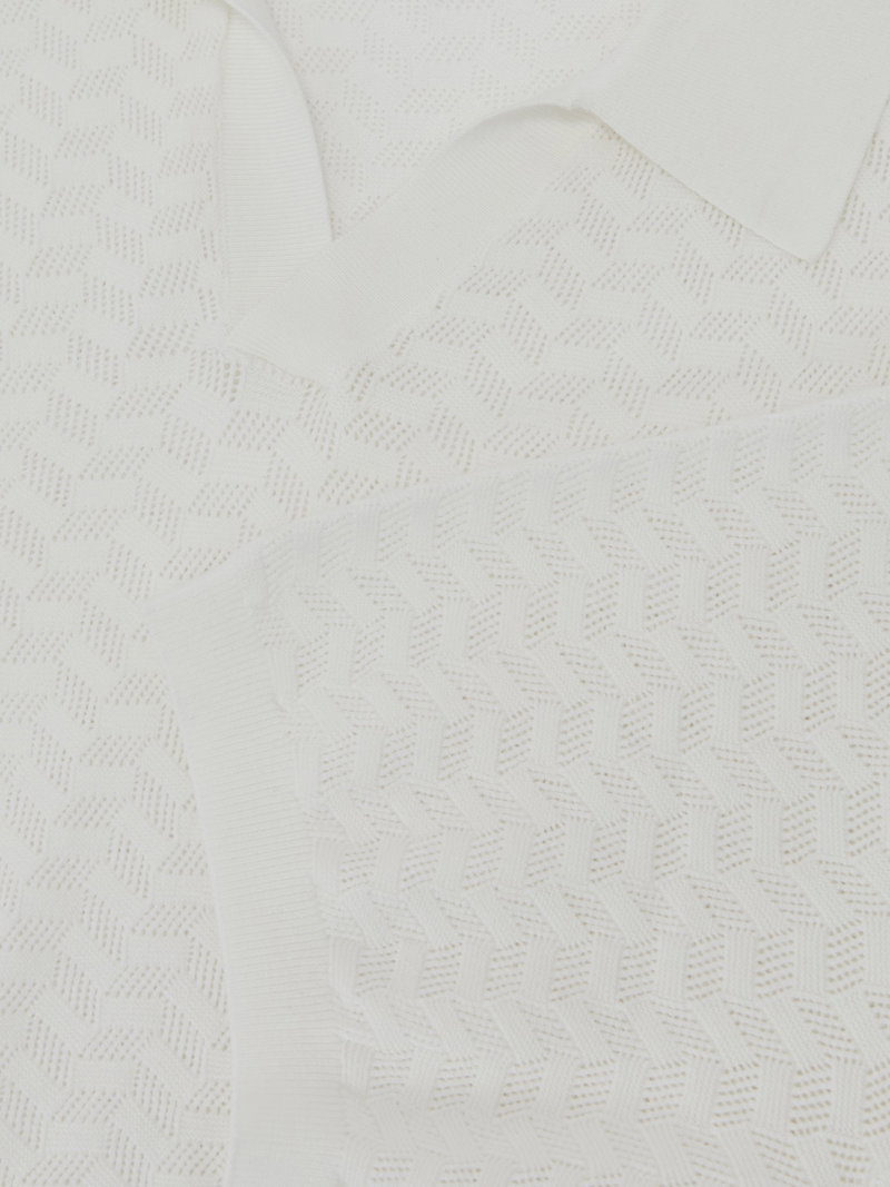 Textured-Knit Open-Collar Polo Shirt In White