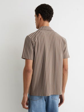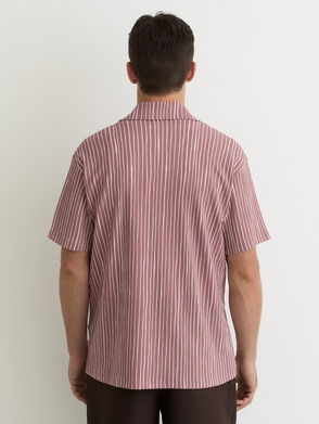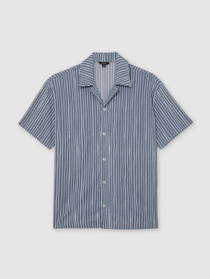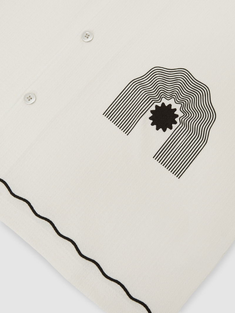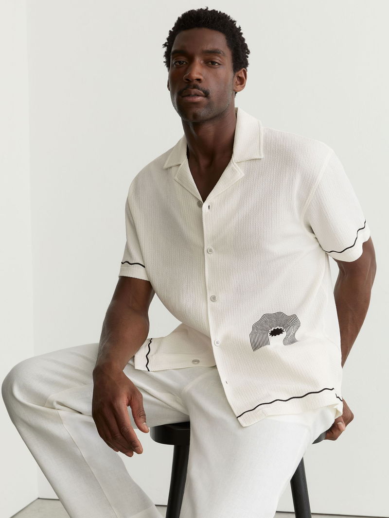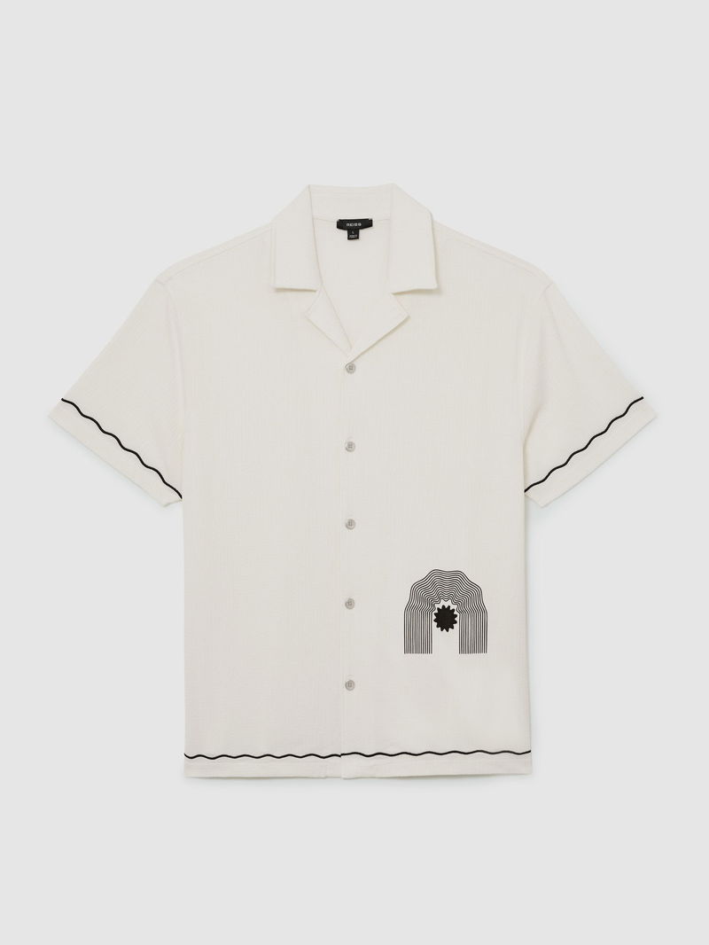 Textured Motif-Print Cuban-Collar Shirt In White