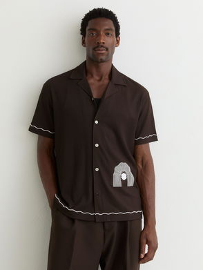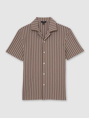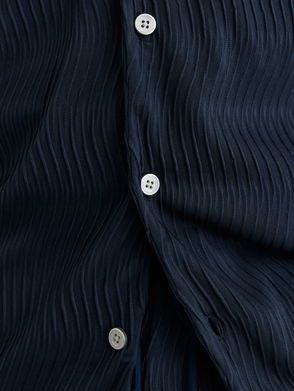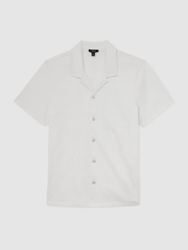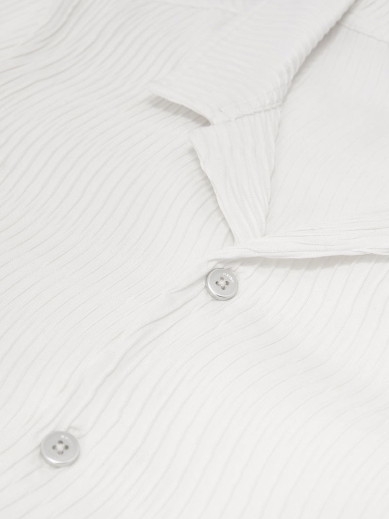 Textured-Wave Cuban-Collar Shirt In White