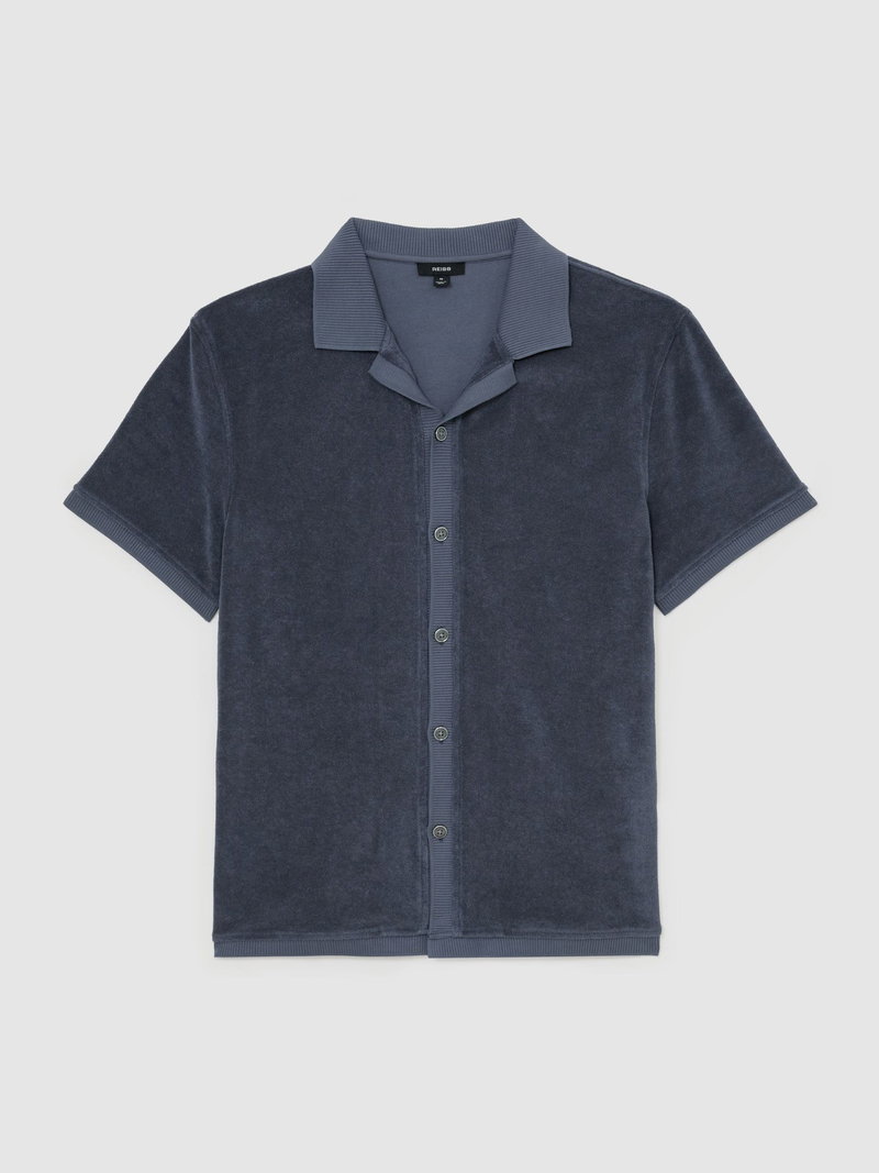 Towelling Short-Sleeve Shirt In Airforce Blue