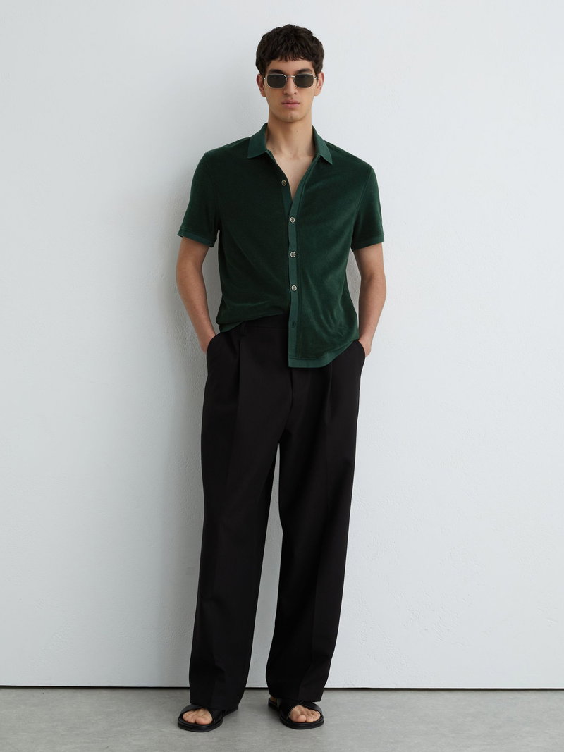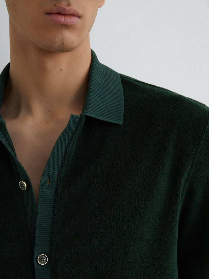 Towelling Short-Sleeve Shirt In Forest Green